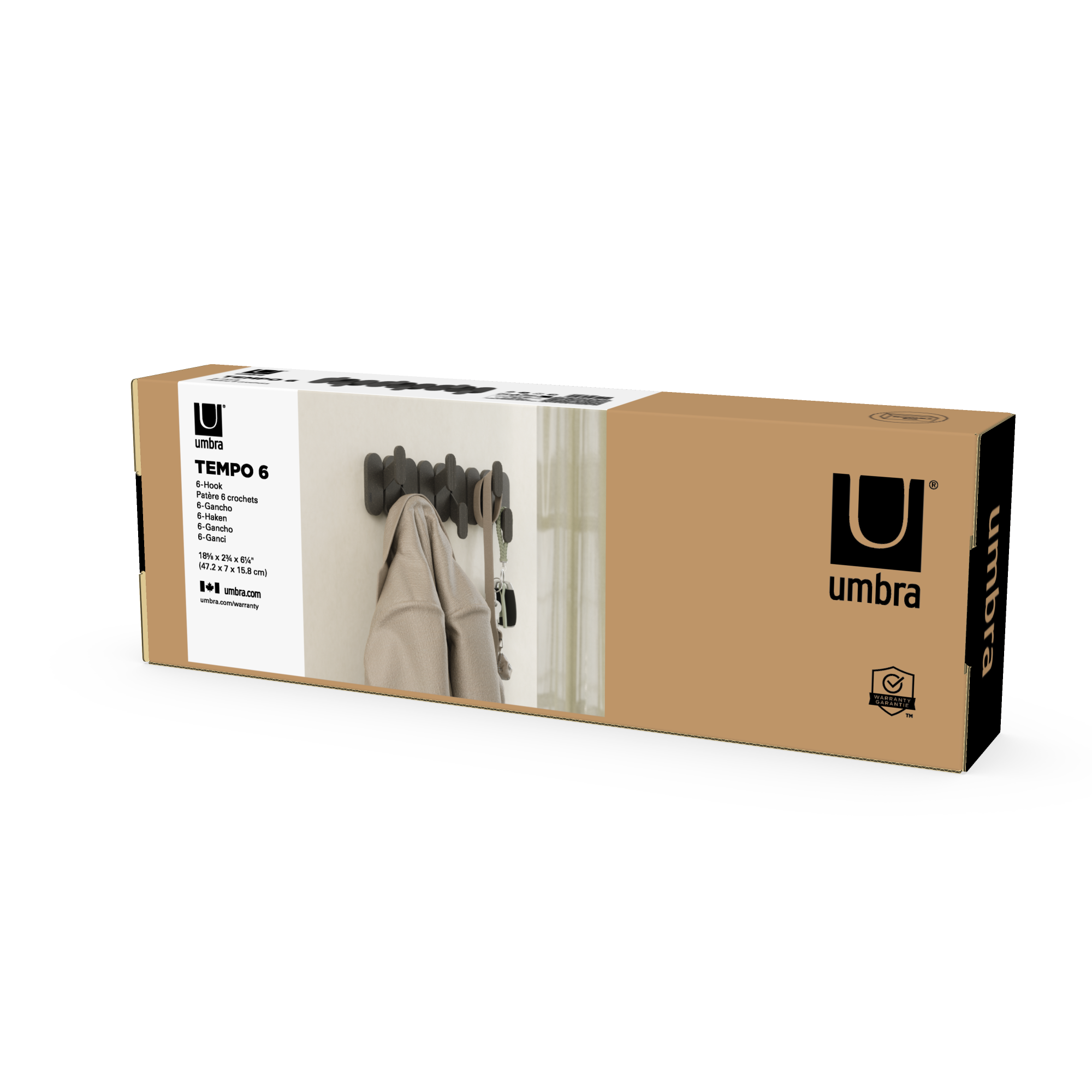 Nowoczesne i funkcjonalne: sześć przesuniętych haczyków Tempo łączy nowoczesny styl z codzienną funkcjonalnością, pomagając w uporządkowaniu płaszczy, toreb, ręczników i innych rzeczy