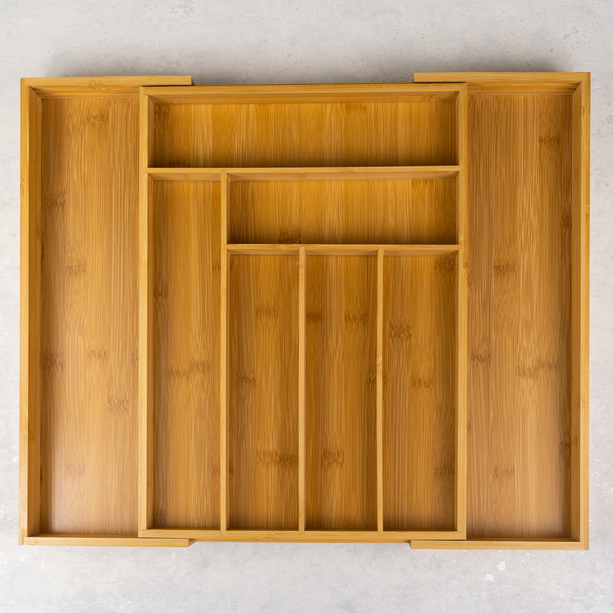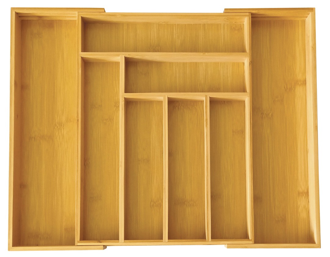 Funkcjonalny i estetyczny wkład na sztućce Kinghoff to idealne rozwiązanie do utrzymania porządku w kuchennej szufladzie. Wykonany w 100% z naturalnego bambusa, nie tylko wygląda elegancko, ale jest też trwały i odporny na wilgoć. Dzięki możliwości rozsuwania dopasujesz go do różnych rozmiarów szuflad, a aż 8 przegródek pomieści sztućce, przybory kuchenne i akcesoria codziennego użytku.