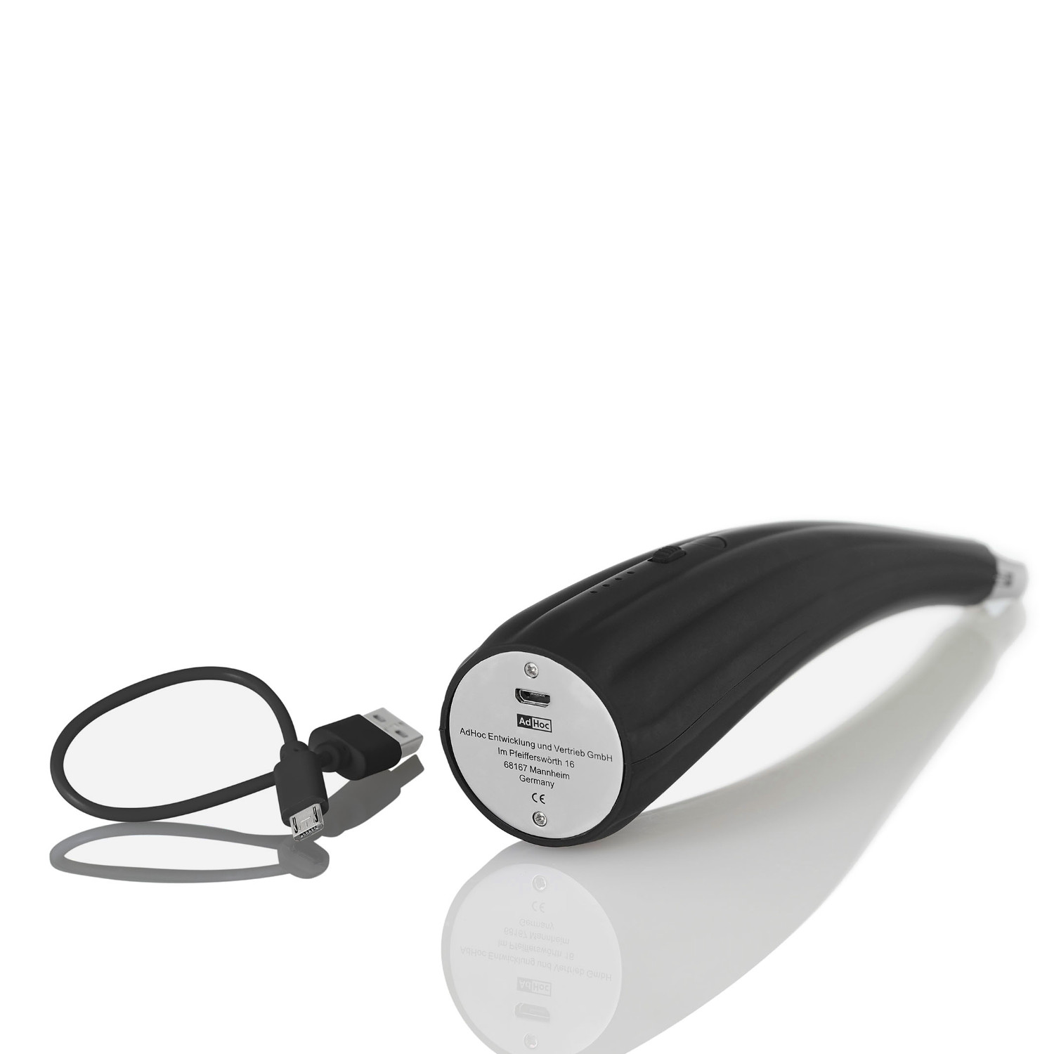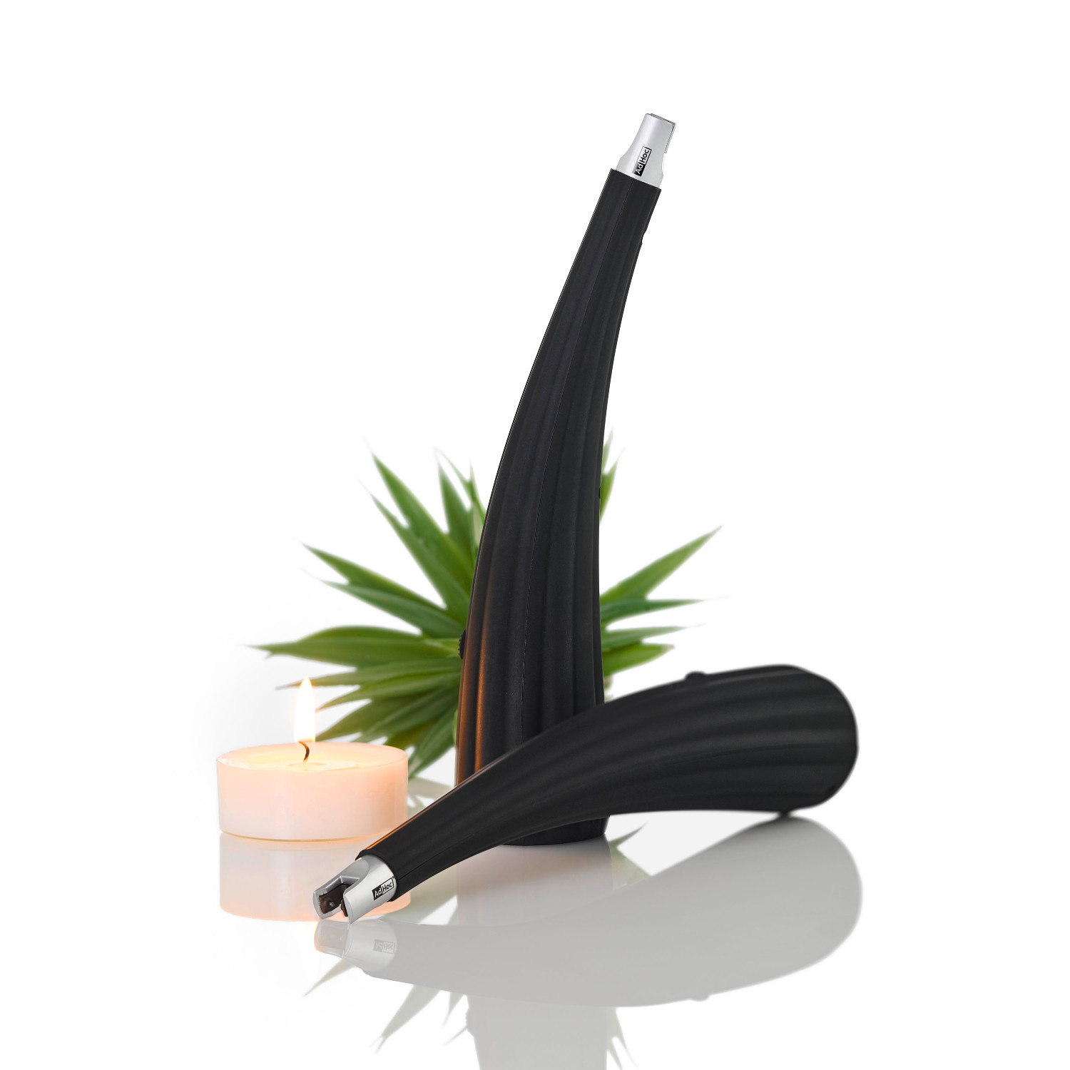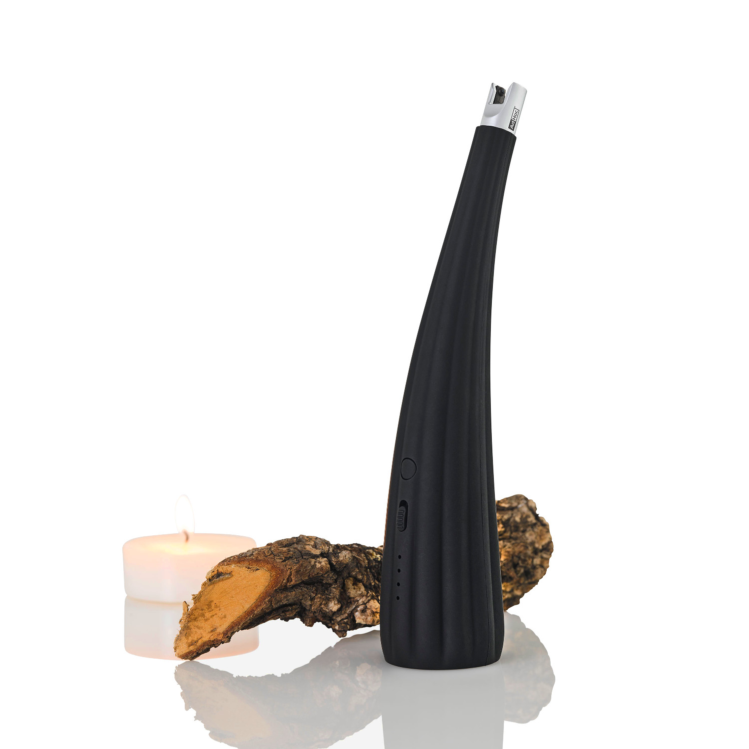 Zapalniczka z łatwością zapali świeczkę, grilla czy kuchenkę gazową przy pomocy łuku elektrycznego, który powstaje pomiędzy dwiema przeciwnie naładowanymi elektrodami i wytwarza temperaturę powyżej 1000°C. Zapalniczka sprawdzi się w wietrzną pogodę, a dzięki swojej długości pozwala na zachowanie bezpiecznej odległości podczas zapalania. Zapalniczki nie trzeba napełniać gazem, wystarczy naładować ją przy pomocy zawartego w zestawie kabla USB. Jest ona alternatywą dla tradycyjnych zapalniczek gazowych. Zapalniczka posiada na obudowie wskaźnik poziomu naładowania w postaci 4 diod LED. Produkt został zaprojektowany przez Gabriele Kaltenbach. Uwaga: Zapalniczka nie jest zabawką i należy ją przechowywać w miejscu niedostępnym dla dzieci. Podczas użytkowania należy zachować bezpieczny dystans od twarzy, ubrania i innych ludzi. Uwagi dotyczące użytkowania: – przed pierwszym użyciem zaleca się naładować do pełna przy pomocy załączonego kabla USB, czyli do momentu aż wszystkie cztery diody będą świecić na niebiesko, – zapalniczkę uruchomiamy przy pomocy suwaka przesuwając go do góry, kiedy diody zaświecą na niebiesko zapalniczka jest gotowa do pracy, teraz wystarczy nacisnąć okrągły przycisk powyżej suwaka, aby wytworzyć łuk elektryczny, – zapalniczkę czyścimy suchą ściereczką. Materiał: tworzywo sztuczne, stal nierdzewna.