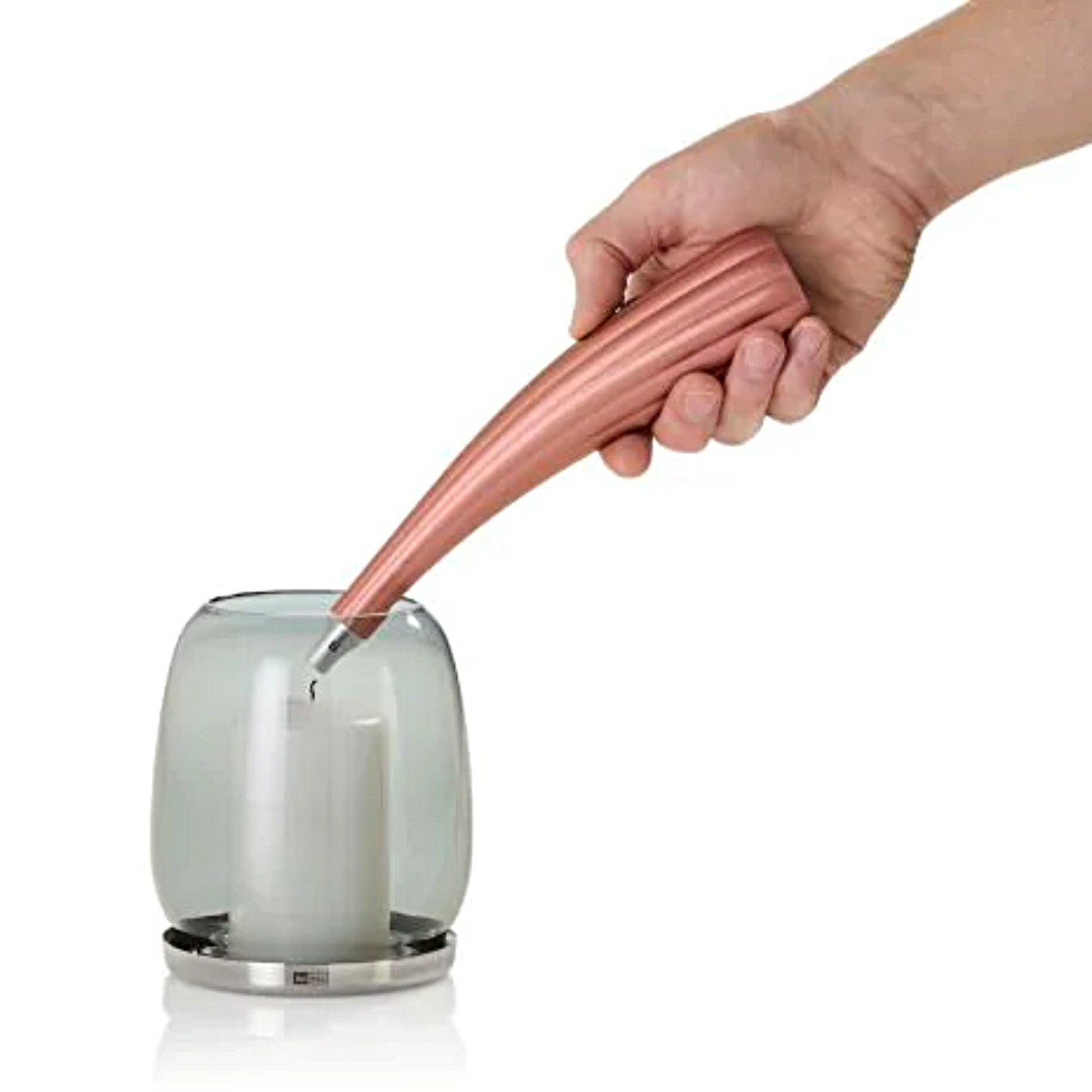 Zapalniczka z łatwością zapali świeczkę, grilla czy kuchenkę gazową przy pomocy łuku elektrycznego, który powstaje pomiędzy dwiema przeciwnie naładowanymi elektrodami i wytwarza temperaturę powyżej 1000°C. Zapalniczka sprawdzi się w wietrzną pogodę, a dzięki swojej długości pozwala na zachowanie bezpiecznej odległości podczas zapalania. Zapalniczki nie trzeba napełniać gazem, wystarczy naładować ją przy pomocy zawartego w zestawie kabla USB. Jest ona alternatywą dla tradycyjnych zapalniczek gazowych. Zapalniczka posiada na obudowie wskaźnik poziomu naładowania w postaci 4 diod LED. Produkt został zaprojektowany przez Gabriele Kaltenbach. Uwaga: Zapalniczka nie jest zabawką i należy ją przechowywać w miejscu niedostępnym dla dzieci. Podczas użytkowania należy zachować bezpieczny dystans od twarzy, ubrania i innych ludzi. Uwagi dotyczące użytkowania: – przed pierwszym użyciem zaleca się naładować do pełna przy pomocy załączonego kabla USB, czyli do momentu aż wszystkie cztery diody będą świecić na niebiesko; – zapalniczkę uruchamia się przy pomocy suwaka przesuwając go do góry, kiedy diody zaświecą na niebiesko zapalniczka jest gotowa do pracy, teraz wystarczy nacisnąć okrągły przycisk powyżej suwaka, aby wytworzyć łuk elektryczny; – zapalniczkę zaleca się czyścić suchą ściereczką. Materiał: tworzywo sztuczne, stal nierdzewna. Przybliżone wymiary: wysokość – 21,3cm, szerokość – 4,8cm, średnica podstawy – 4,2cm. Przybliżone wymiary brutto: wysokość – 22cm, długość – 7,3cm, szerokość – 5cm. Przybliżona waga brutto: 0,186kg.