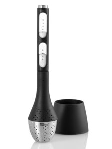 Ten zaparzacz wyposażony jest w magnetycznie mocowaną, odwracalną klepsydrę, która odmierza czas parzenia (2 – 5 minut). Można go bardzo łatwo otworzyć i napełnić. Zawarta w zestawie podstawka zbiera wszystkie krople po zakończeniu procesu parzenia. Produkt został zaprojektowany przez AdHoc Design Team. Materiał: stal nierdzewna, plastik, szkło. Wymiary: średnica – 4cm, wysokość – 21,5cm.