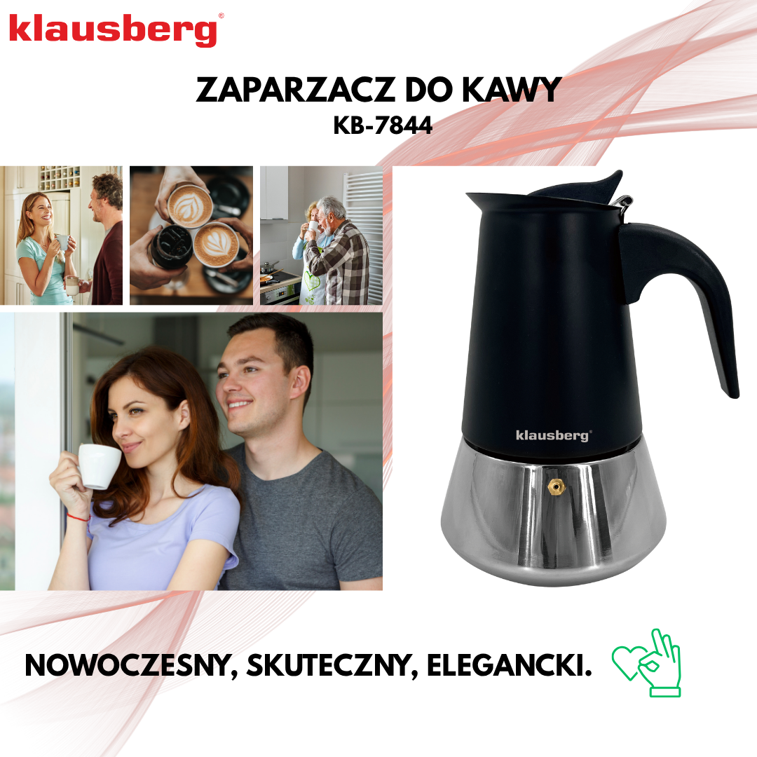 Zaparzacz do kawy Klausberg – 4 filiżanki espresso, stal nierdzewna, czarno-srebrny