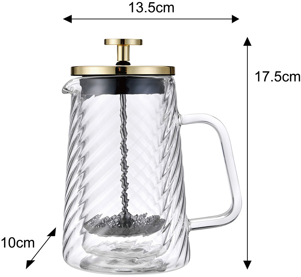 Zaparzacz tłokowy Klausberg KB-7765 o pojemności 350 ml to stylowy i praktyczny wybór dla jednej lub dwóch osób. Wykonany z wytrzymałego szkła borokrzemowego, zachwyca nowoczesnym designem ze złotym akcentem i spiralną fakturą szkła. Dzięki podwójnym ściankom dłużej utrzymuje temperaturę napoju, zapewniając jednocześnie komfort użytkowania.