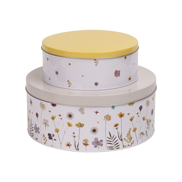 – zestaw zawiera średnią i dużą puszkę z pięknym kwiatowym nadrukiem, które można umieścić jedna na drugiej,