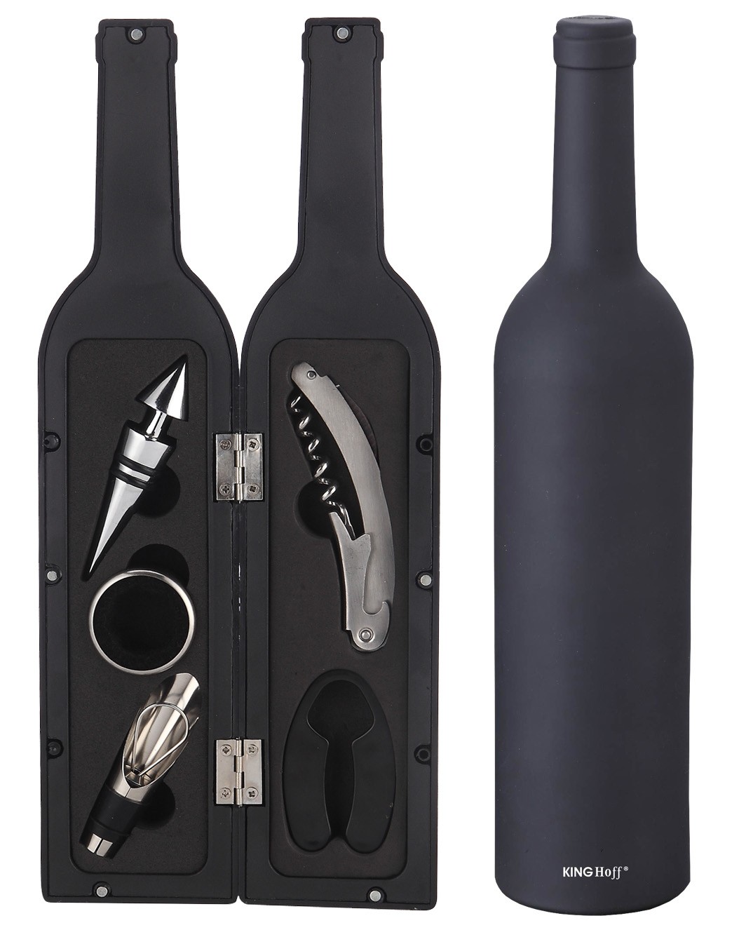 Zestaw akcesoriów do wina w kształcie butelki KingHoff – idealny prezent i stylowy dodatek do domowego barku