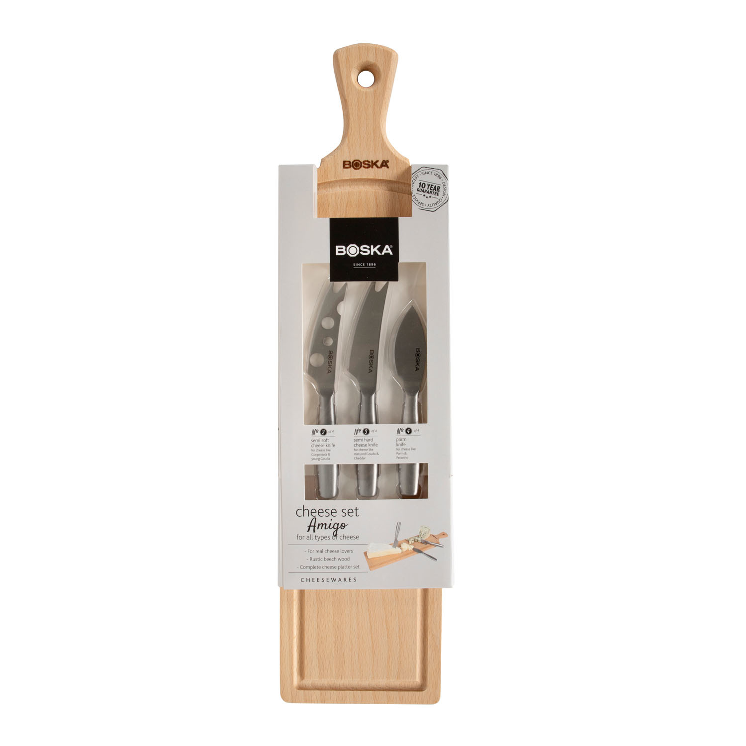 Zestaw AMIGO Buk deska + noże. Materiał:noże – stal nierdzewna, deska drewno buk.