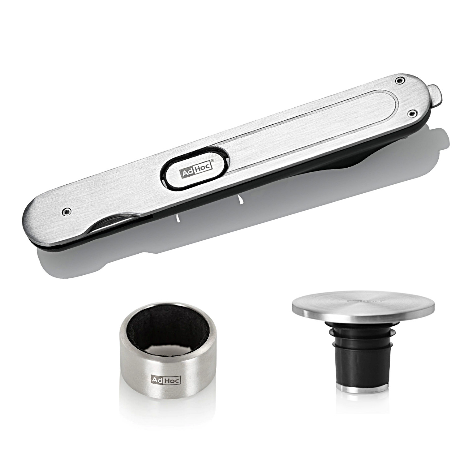 Zestaw składa się z korkociągu PushPull (KU50), zatyczki do butelki Champ (FV41) i pierścienia przeciw kapaniu Champ (FV45). Korkociąg PushPull jest dwustopniowy a jego powlekana spirala łatwo i delikatnie wkręca się w korki naturalne i plastikowe. Korkociąg posiada zintegrowany nożyk do folii i otwieracz butelek. Wszystko to składa się na zgrabne i kompaktowe narzędzie. Elegancki Korek CHAMP z silikonową uszczelką jest wyjątkowo niski i płaski co sprawdzi się przy przechowywaniu butelek w lodówce. Idealnym dopełnieniem zestawu jest pierścień przeciw kapaniu, który zbierze wszystkie ściekające krople a Twoje dłonie i stół pozostaną czyste. Zaleca się czyścić ręcznie, nie można myć w zmywarce. Przybliżone wymiary korkociągu złożonego: – wysokość 1,6cm, – długość 15cm, – szerokość 2,1cm. Przybliżone wymiary zatyczki: – wysokość 3cm, – średnica góra 4,5cm, – średnica dół 1,6cm. Przybliżone wymiary pierścienia: – wysokość 2cm, – średnica wewnętrzna 3,2cm, – średnica zewnętrzna 3,8cm. Przybliżone wymiary brutto: – wysokość 9m, – długość 19cm, – szerokość 4cm. Przybliżona waga brutto: 0,265kg. Opakowanie: kartonowe pudełko prezentowe.
