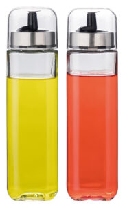 Komplet do oliwy i octu, wykonany jest ze szkła, które charakteryzuje się eleganckim, ponadczasowym wyglądem i prostym designem. Szklane naczynia świetnie pasują do każdej zastawy stołowej oraz wystroju kuchni. Ponadto są łatwe w utrzymaniu czystości i higieniczne.