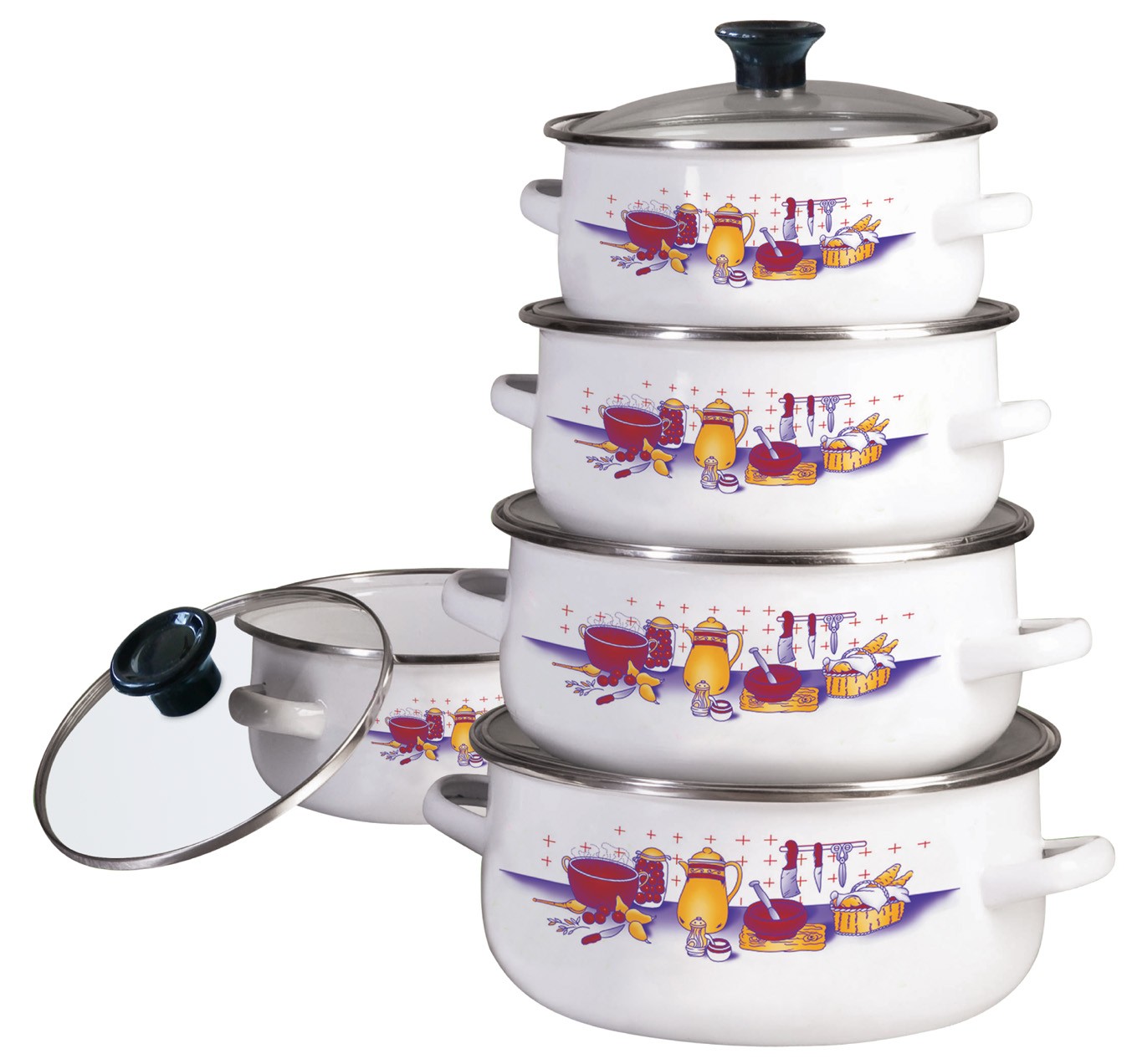 – Garnki z pokrywkami (5 szt.)