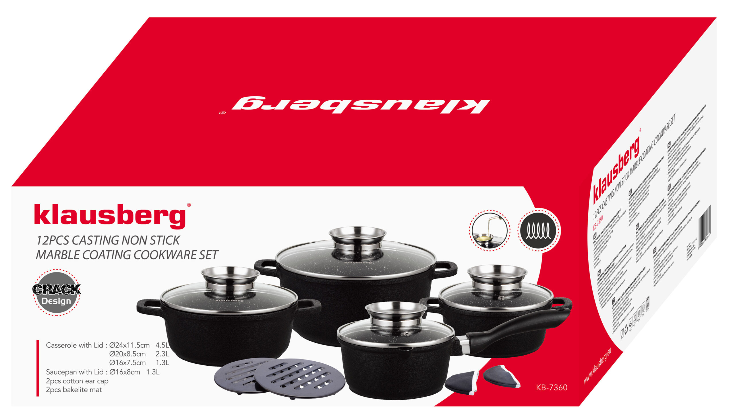 Klausberg to producent akcesoriów kuchennych, który łączy nowoczesne technologie z funkcjonalnym designem. W ofercie marki znajdziesz garnki Klausberg ze stali nierdzewnej, zestawy garnków z powłoką marmurową, patelnie z nieprzywierającą powłoką oraz praktyczne akcesoria kuchenne Klausberg do gotowania, smażenia i pieczenia. Dzięki zastosowaniu wysokiej jakości materiałów – stali szlachetnej i aluminium z powłoką marmurkową – naczynia równomiernie rozprowadzają ciepło i są przystosowane do wszystkich typów kuchenek, w tym płyt indukcyjnych.