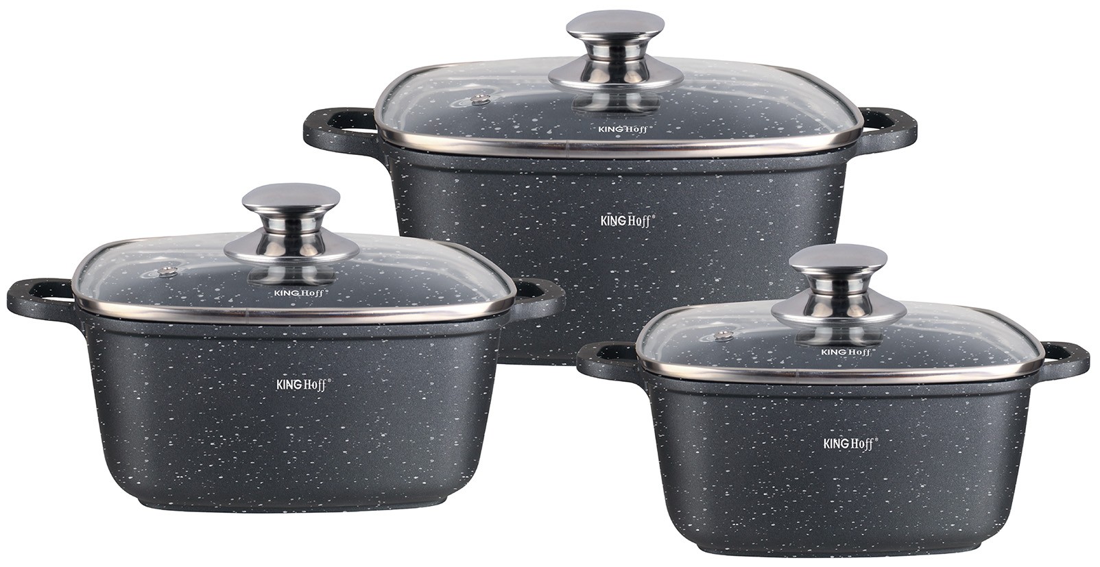 Zestaw garnków 6 elementów, stal Ø 20x20x8cm – 2,8l, Ø24x24x10cm – 4,4l, Ø28x28x11cm – 6,5 l Kinghoff