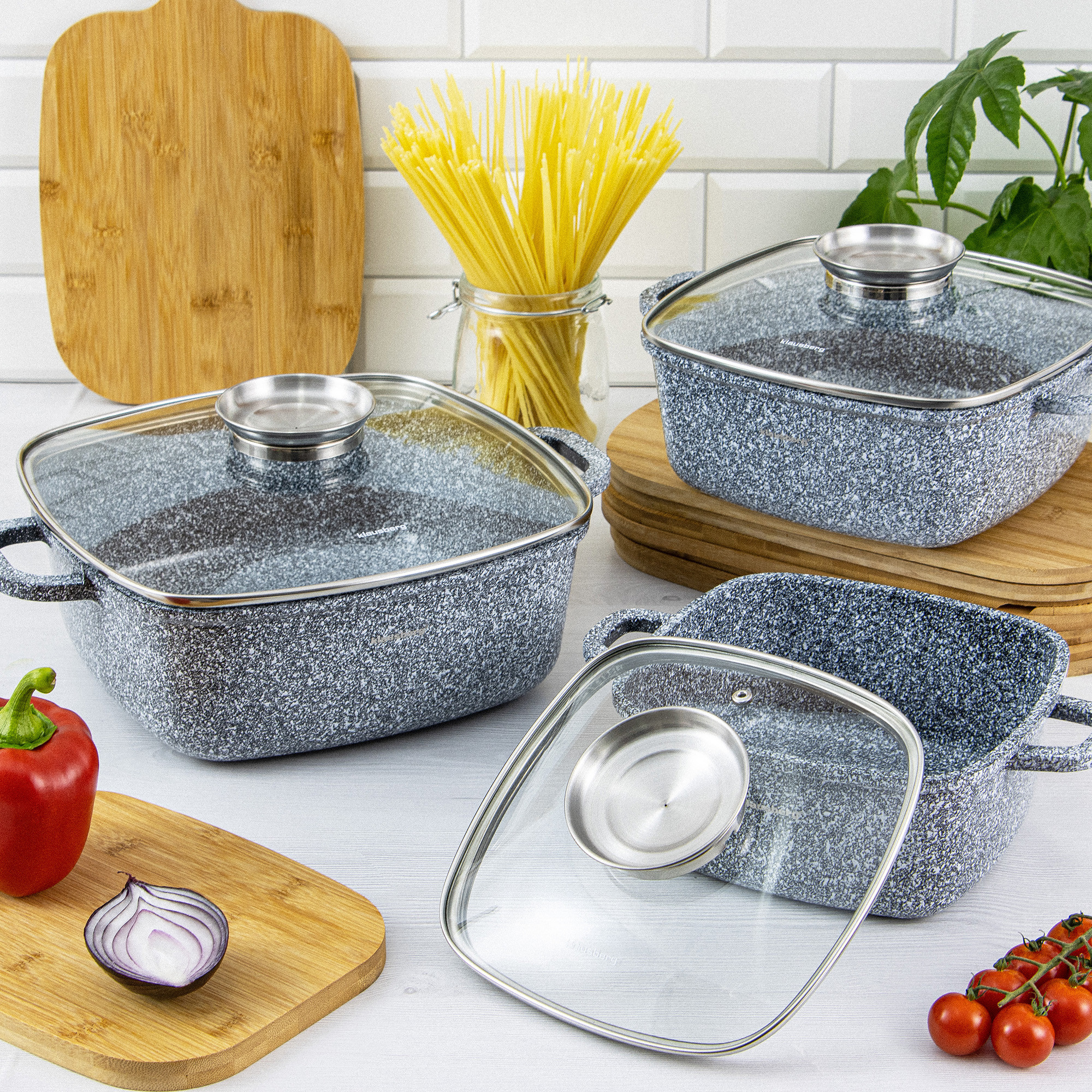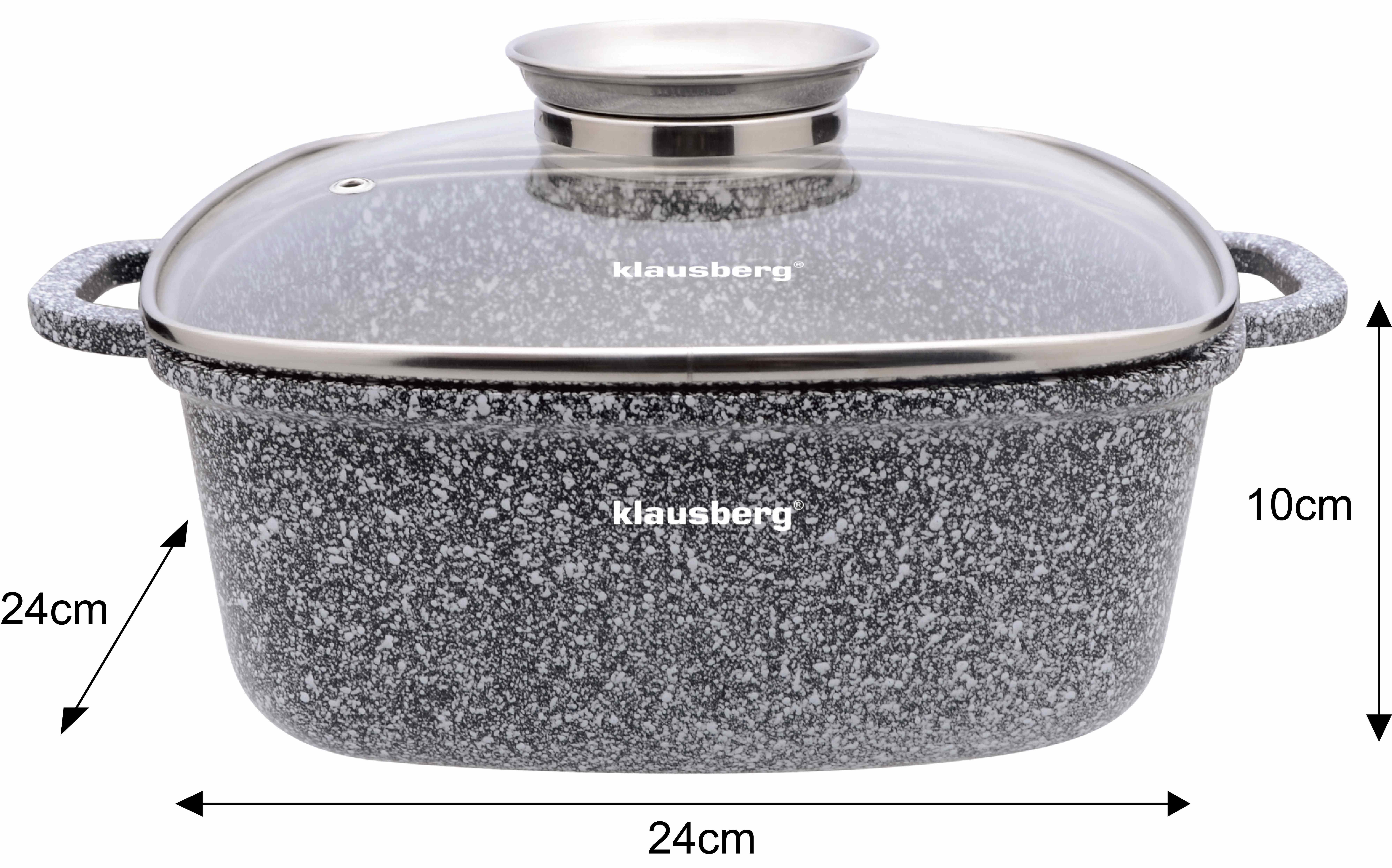 Klausberg to producent akcesoriów kuchennych, który łączy nowoczesne technologie z funkcjonalnym designem. W ofercie marki znajdziesz garnki Klausberg ze stali nierdzewnej, zestawy garnków z powłoką marmurową, patelnie z nieprzywierającą powłoką oraz praktyczne akcesoria kuchenne Klausberg do gotowania, smażenia i pieczenia. Dzięki zastosowaniu wysokiej jakości materiałów – stali szlachetnej i aluminium z powłoką marmurkową – naczynia równomiernie rozprowadzają ciepło i są przystosowane do wszystkich typów kuchenek, w tym płyt indukcyjnych.