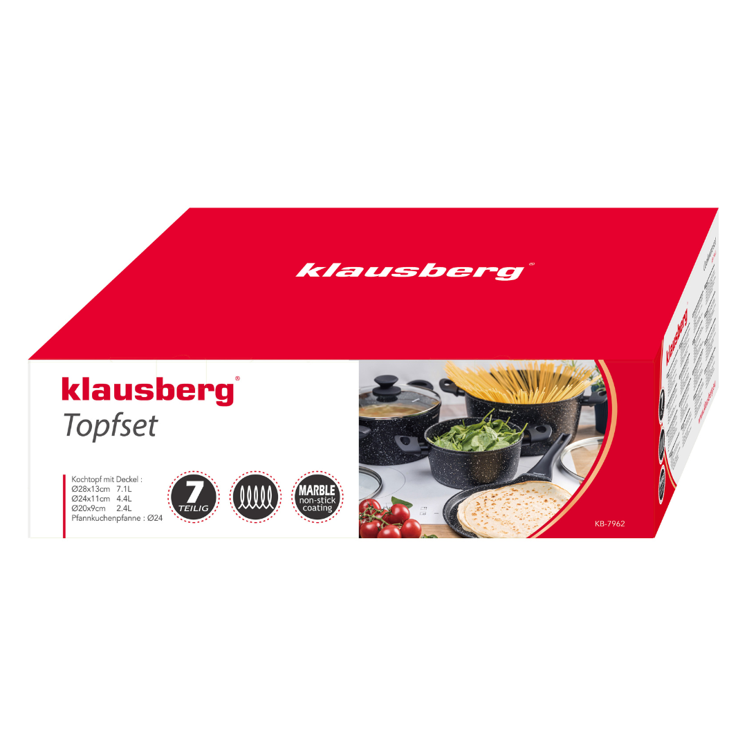 Klausberg to producent akcesoriów kuchennych, który łączy nowoczesne technologie z funkcjonalnym designem. W ofercie marki znajdziesz garnki Klausberg ze stali nierdzewnej, zestawy garnków z powłoką marmurową, patelnie z nieprzywierającą powłoką oraz praktyczne akcesoria kuchenne Klausberg do gotowania, smażenia i pieczenia. Dzięki zastosowaniu wysokiej jakości materiałów – stali szlachetnej i aluminium z powłoką marmurkową – naczynia równomiernie rozprowadzają ciepło i są przystosowane do wszystkich typów kuchenek, w tym płyt indukcyjnych.