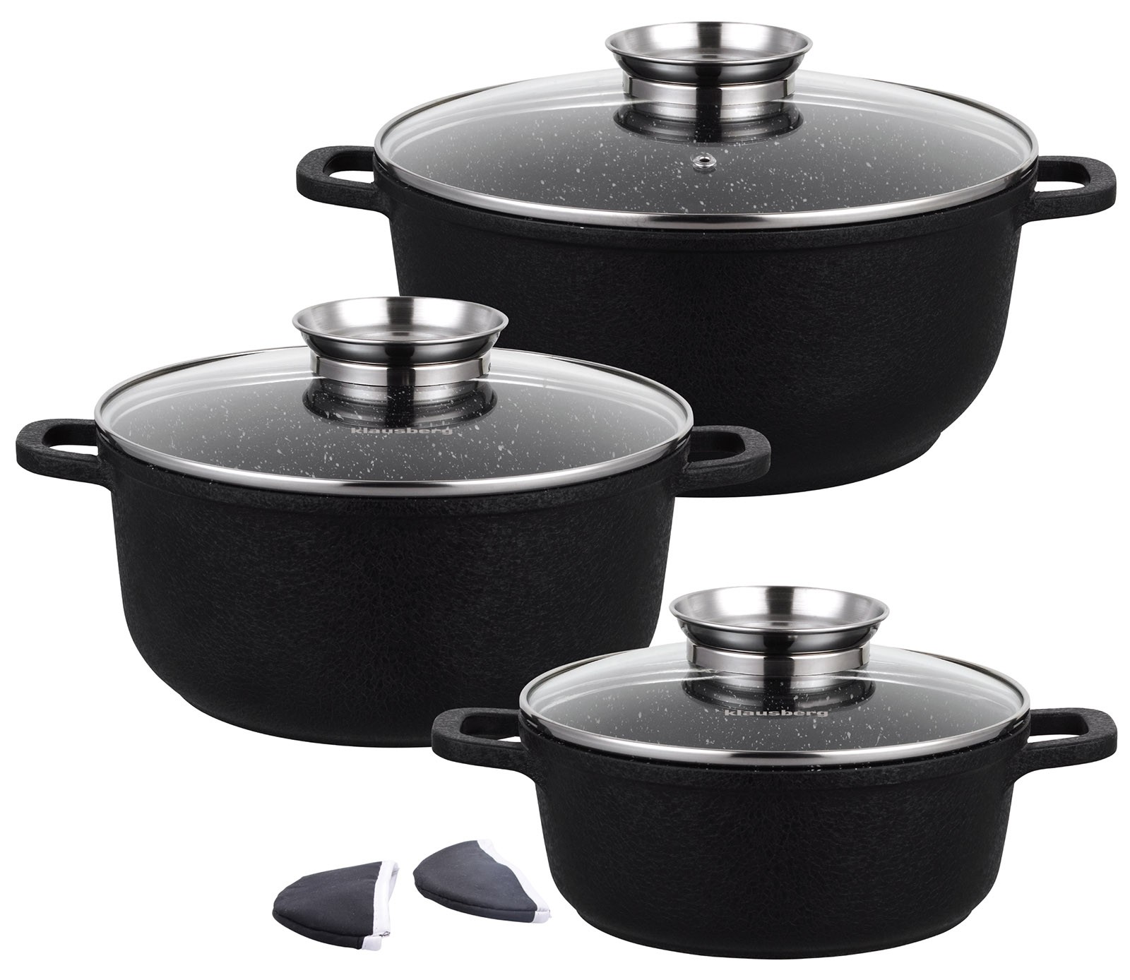 Klausberg to producent akcesoriów kuchennych, który łączy nowoczesne technologie z funkcjonalnym designem. W ofercie marki znajdziesz garnki Klausberg ze stali nierdzewnej, zestawy garnków z powłoką marmurową, patelnie z nieprzywierającą powłoką oraz praktyczne akcesoria kuchenne Klausberg do gotowania, smażenia i pieczenia. Dzięki zastosowaniu wysokiej jakości materiałów – stali szlachetnej i aluminium z powłoką marmurkową – naczynia równomiernie rozprowadzają ciepło i są przystosowane do wszystkich typów kuchenek, w tym płyt indukcyjnych.