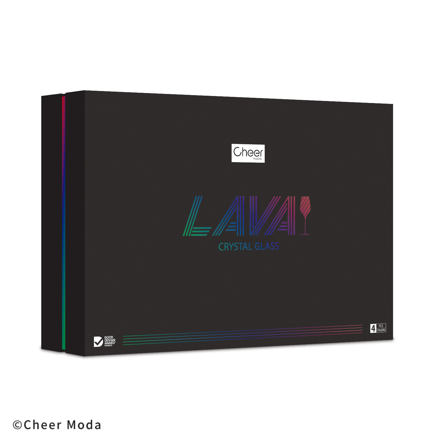 Lava jest rewolucyjnym i zarazem unikalnym kieliszkiem w skali świata, łączącym krystaliczne szkło z metalem. Jego nóżka jest wykonana z anodyzowanego aluminium, co zapewnia powiązanie niezwykłej odporności na stłuczenie z lekkością. Lava otrzymała nagrodę Good Design Award w 2020 roku. W zestawie znajdują się 4 kieliszki w kolorach: czarnym, czerwonym, niebieskim i zielonym. Materiał: szkło, aluminium. Opakowanie: kartonowe pudełko prezentowe.