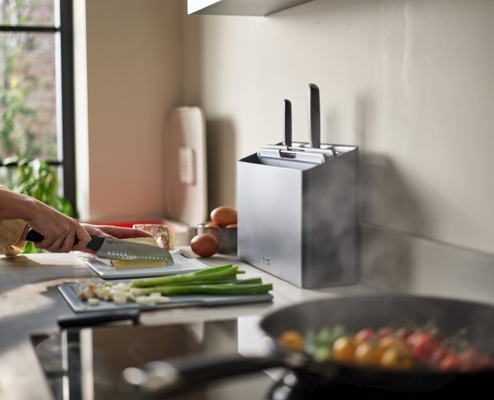 – wykonano je z użyciem technologii Elevate – posiadają podpórki i obciążniki, które utrzymują ostrza ponad powierzchnią blatu co skutkuje higienicznym użytkowaniem,