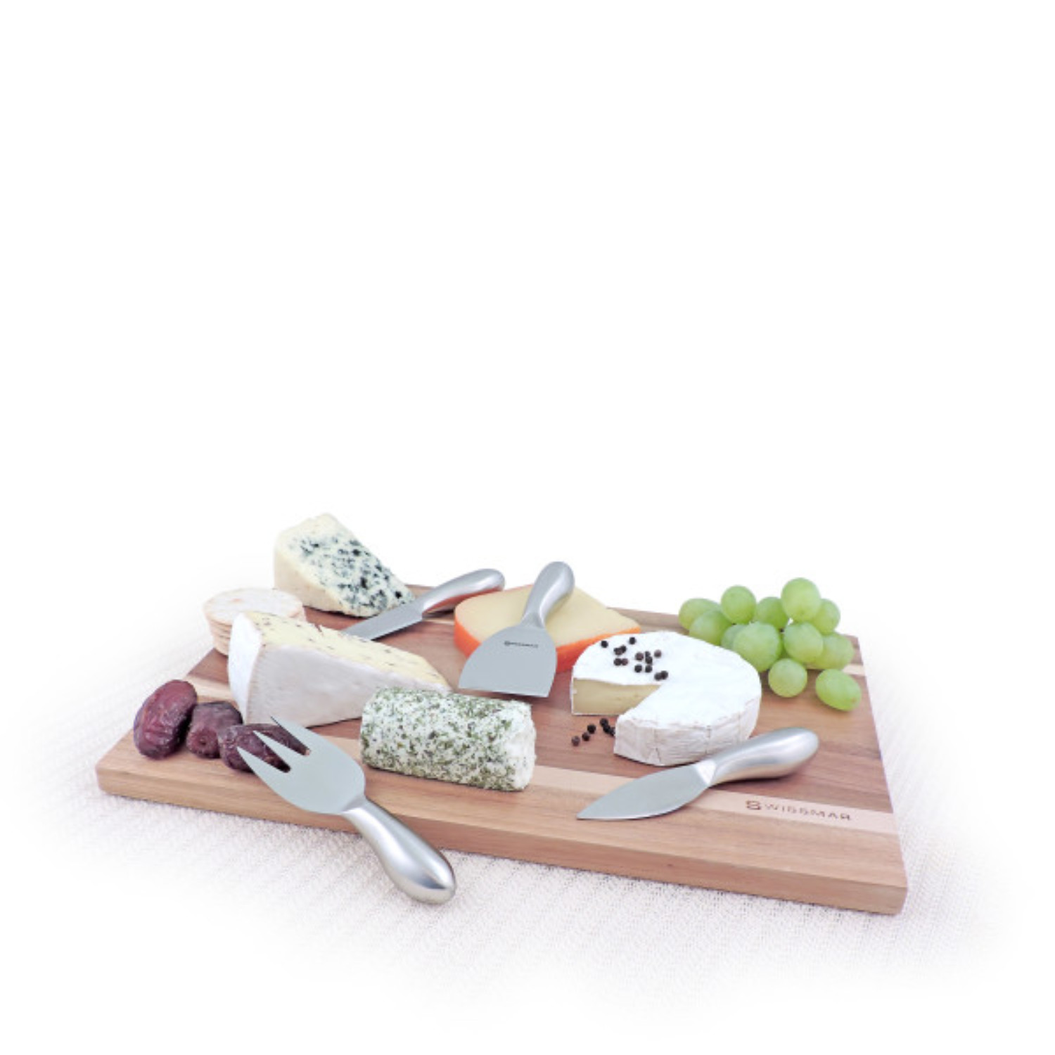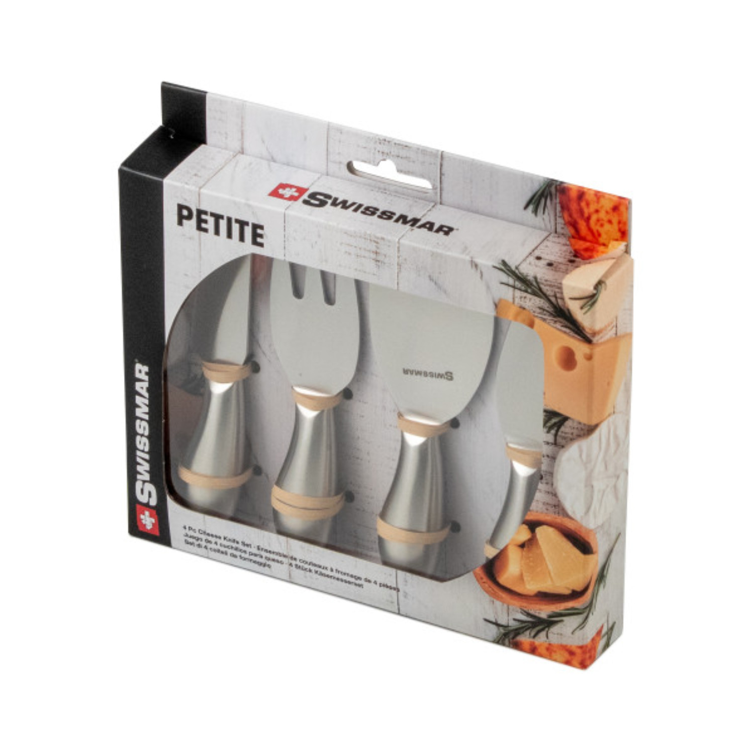 Zestaw składa się z czterech narzędzi do sera: 1 x widelec do sera, 1 x nóż do sera twardego, 1 x nóż do sera miękkiego, 1 x nóż do parmezanu. Noże zostały wykonane w całości ze stali nierdzewnej szczotkowanej, a dzięki zastosowanej technologii produkcji są wyjątkowo lekkie i pewnie leżą w dłoni. Zestaw zapakowany jest w eleganckie pudełko i może być fajnym pomysłem na prezent dla smakosza sera. Idealny zestaw, który pomoże Ci bawić się elegancko i stylowo. Tylko mycie ręczne. Materiał: stal szczotkowana. Przybliżone wymiary noża do sera miękkiego typu fromage: – długość 13cm, – długość ostrza 6cm, – szerokość ostrza 2,3cm. Przybliżone wymiary widelca do sera: – długość 13,5cm, – długość bez rączki 6cm, – szerokość: 3,8cm. Przybliżone wymiary noża do parmezanu: – długość: 13,3cm, – długość ostrza: 5cm, – szerokość ostrza: 5cm. Przybliżone wymiary noża do sera twardego: – długość: 13,3cm, – długość ostrza: 6cm, – szerokość ostrza: 2,5cm. Przybliżone wymiary brutto: – wysokość: 16cm, – długość: 20cm, – szerokość: 3cm. Przybliżona waga brutto: 0,295kg. Opakowanie: pudełko prezentowe, tworzywo.