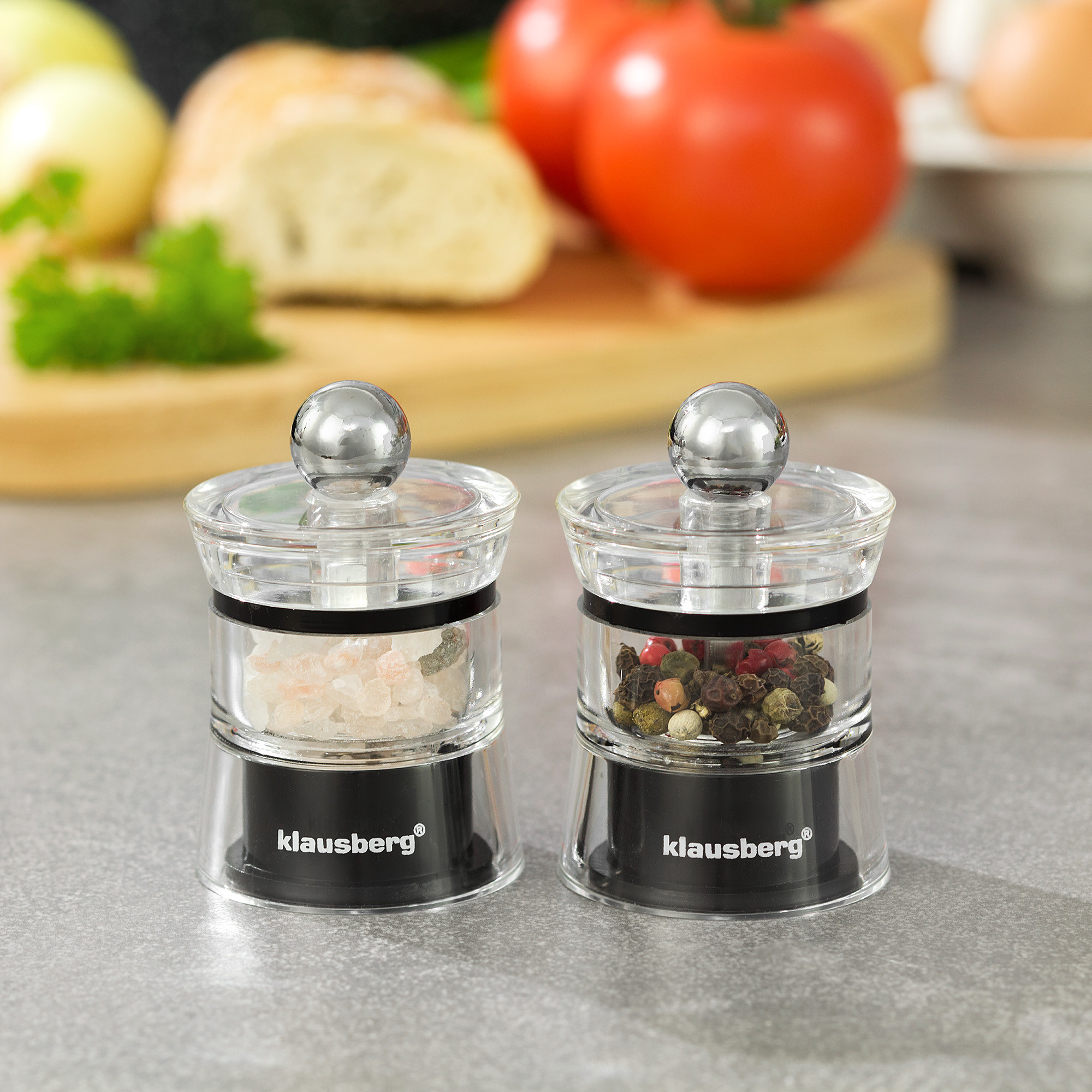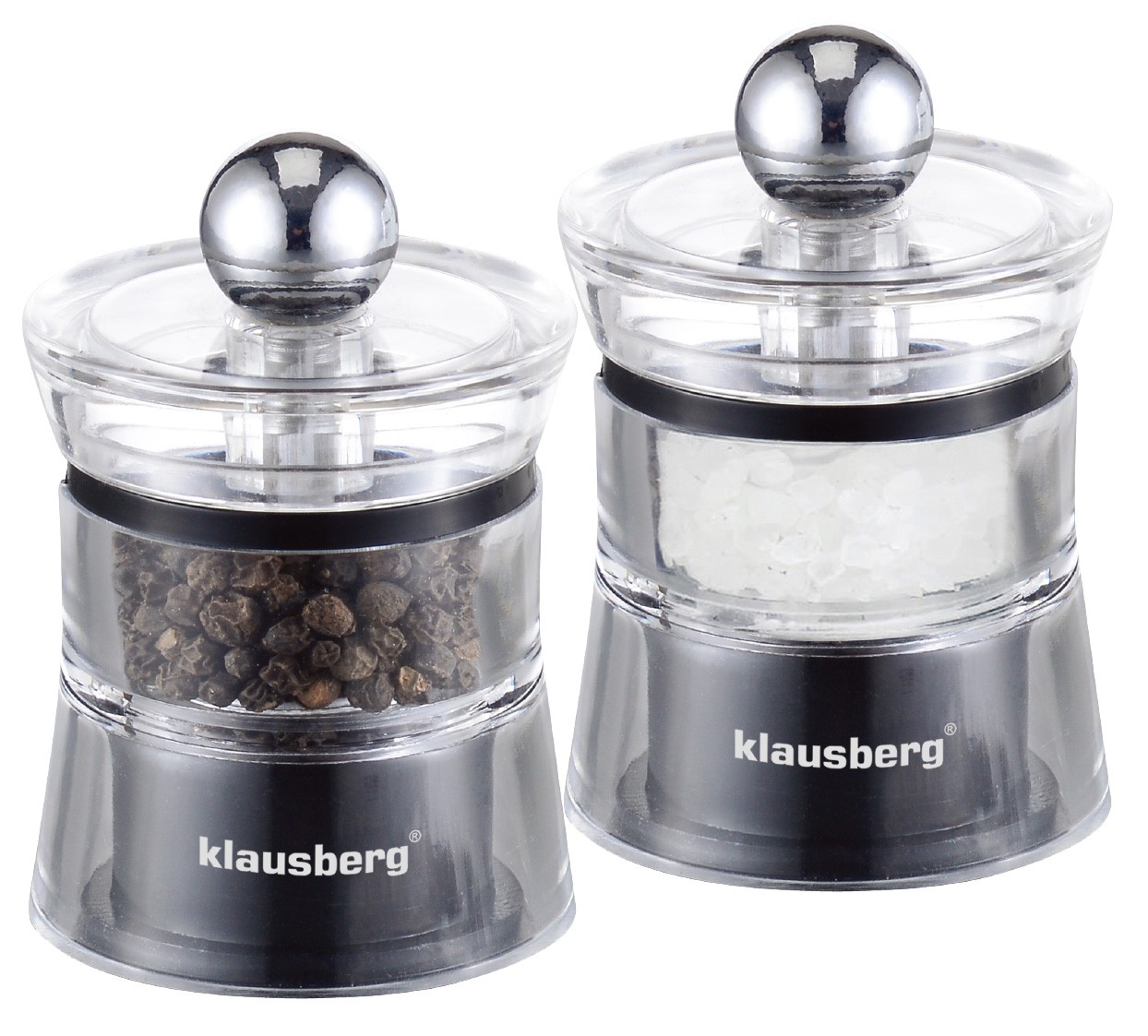 Zestaw młynków do pieprzu i soli. Prosta, klasyczna forma sprawia, że zestaw może być on eleganckim dopełnieniem wystroju kuchni a także stanowić ciekawy element dekoracyjny zastawy stołowej.