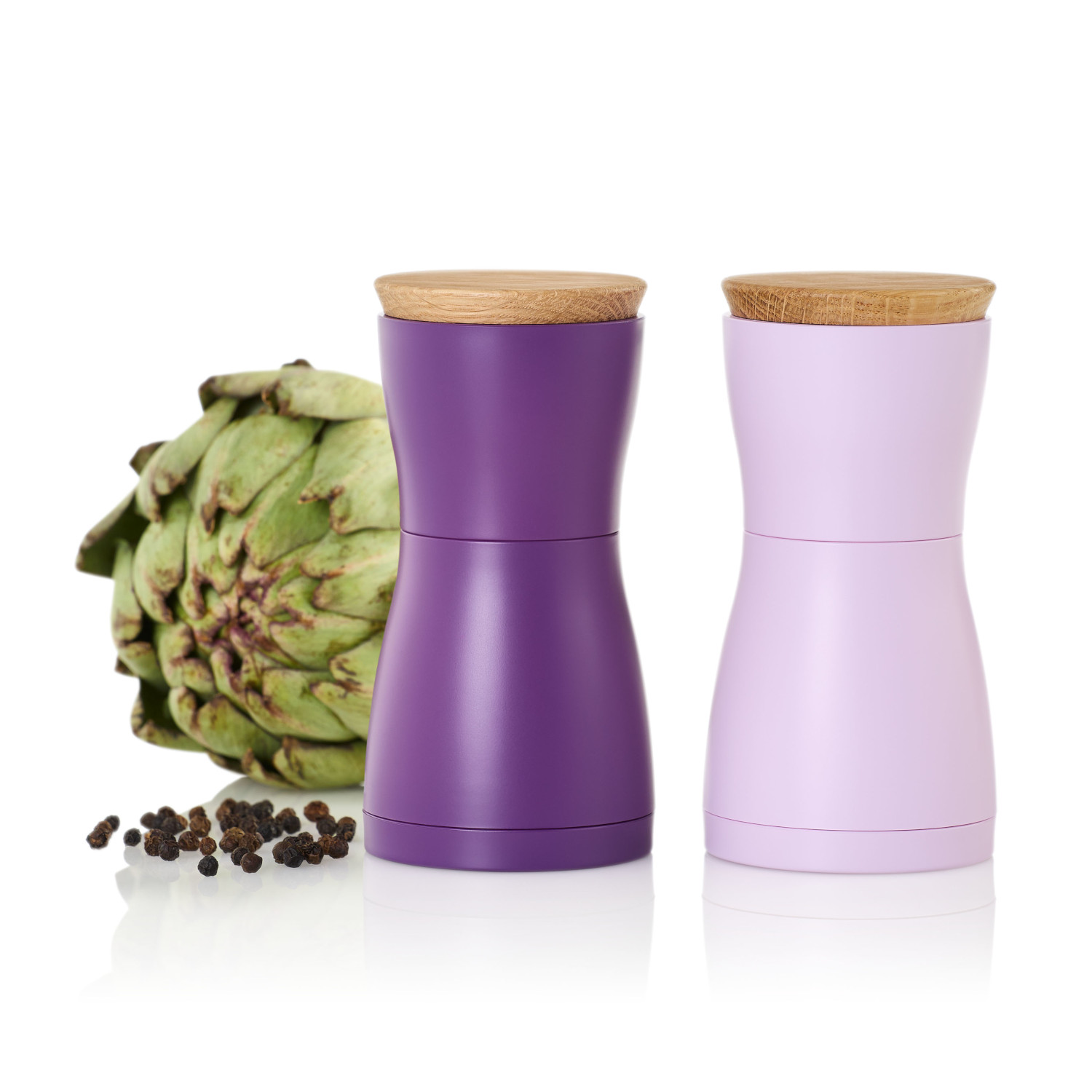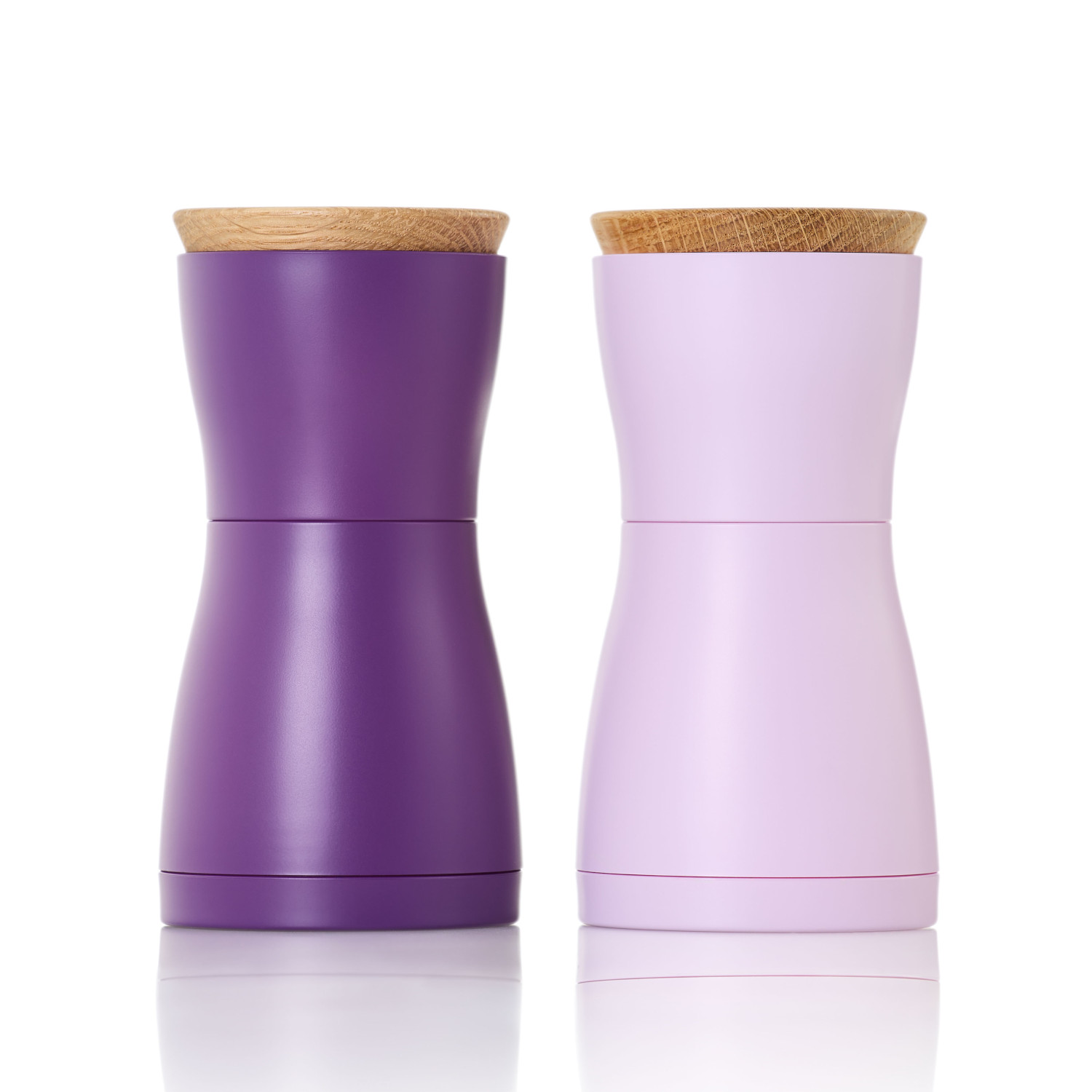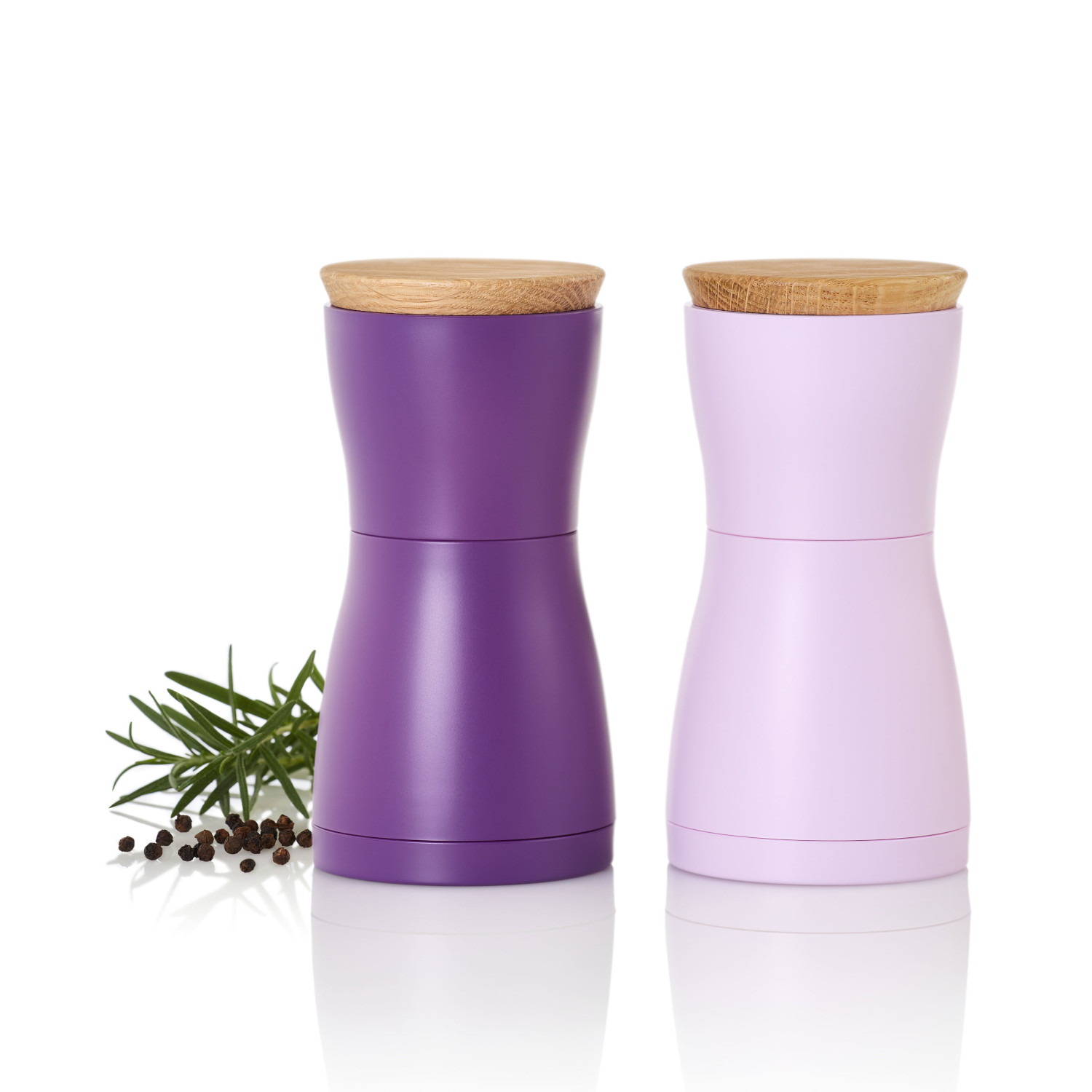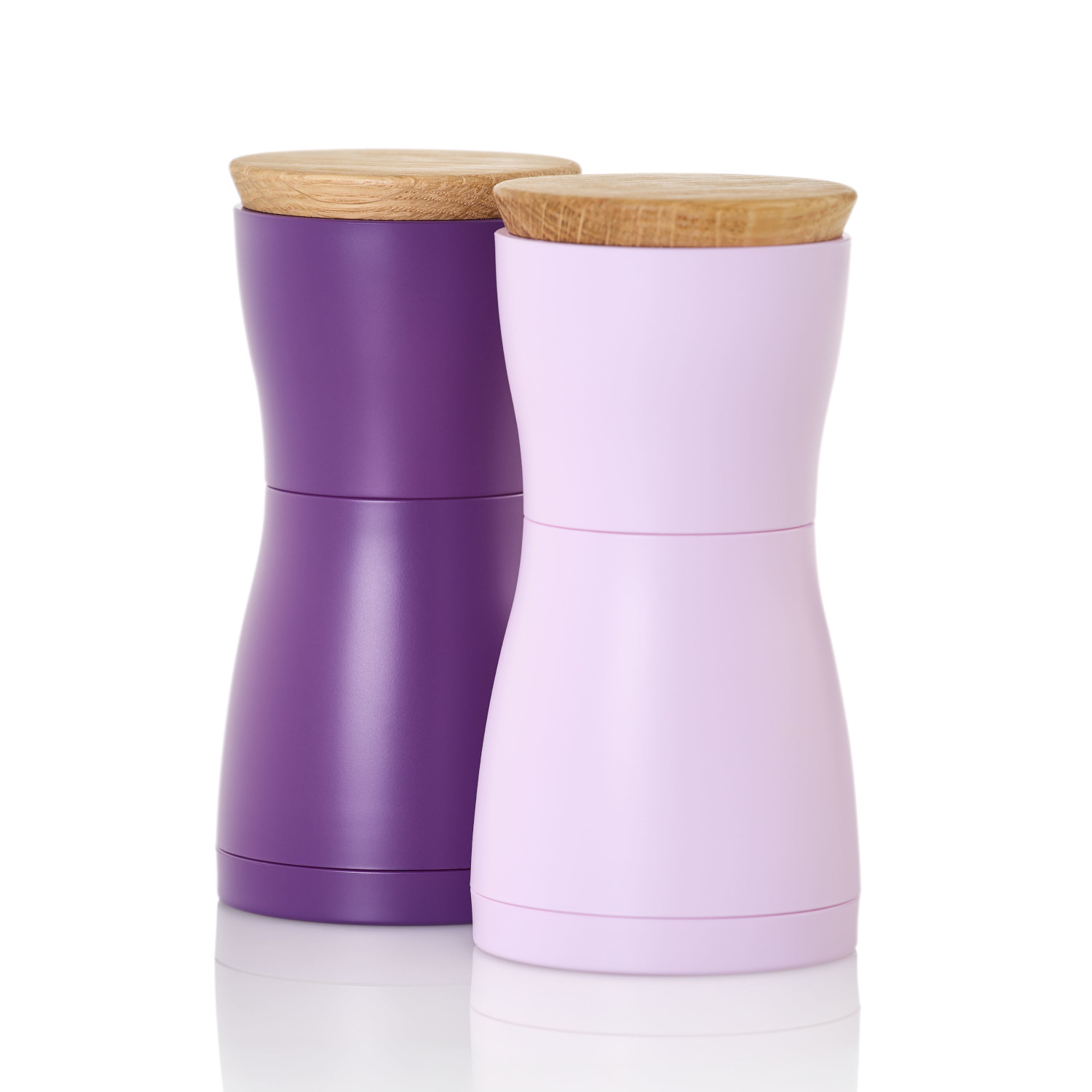 Zestaw młynków Twin został wykonany z tworzywa sztucznego uformowanego w smukły, przyjemnie spoczywający w dłoni kształt. Ceramiczne żarna osadzone na trzpieniu ze stali nierdzewnej, charakteryzują się odpornością na korozję i nie przenoszą smaków oraz zapachów, dzięki czemu smak przypraw pozostaje zawsze nieskazitelny. Zaś szeroki zakres regulacji grubości mielenia za każdym razem pozwala na uzyskanie zamierzonego efektu. Drewniana przykrywka nie tylko szczelnie chroni przed kurzem żarna, ale ogranicza wietrzenie przypraw. Młynki Twin mają spory pojemnik na przyprawy zamykany szeroką pokrywką. Młynek został zaprojektowany przez AdHoc Design Team. Nie należy myć w zmywarce. Materiał: tworzywo, zatyczka drewno, stal nierdzewna, żarna ceramika. Przybliżone wymiary młynka: wysokość – 13,5cm, średnica góra – 6,3cm, średnica dół – 6,8cm. Przybliżone wymiary brutto: wysokość – 16,5cm, długość – 14,5cm, szerokość – 7,3cm. Przybliżona waga brutto: 0,381kg. Opakowanie: kartonowe pudełko prezentowe.
