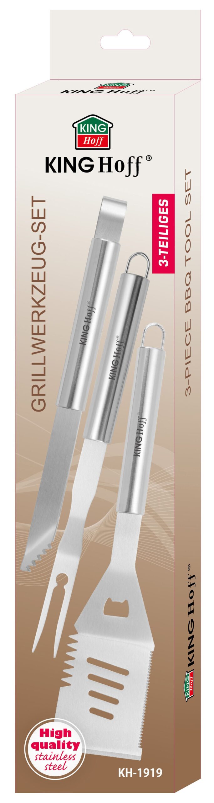 Zestaw narzędzi do grillowania KINGHoff KH-1919 to niezawodne wsparcie dla każdego, kto ceni precyzję, trwałość i wygodę przy przygotowywaniu dań z grilla. Dzięki solidnej stali nierdzewnej i przemyślanej konstrukcji, zestaw sprawdzi się zarówno podczas rodzinnego grillowania, jak i w intensywniejszym użytkowaniu na działce czy w ogrodzie.