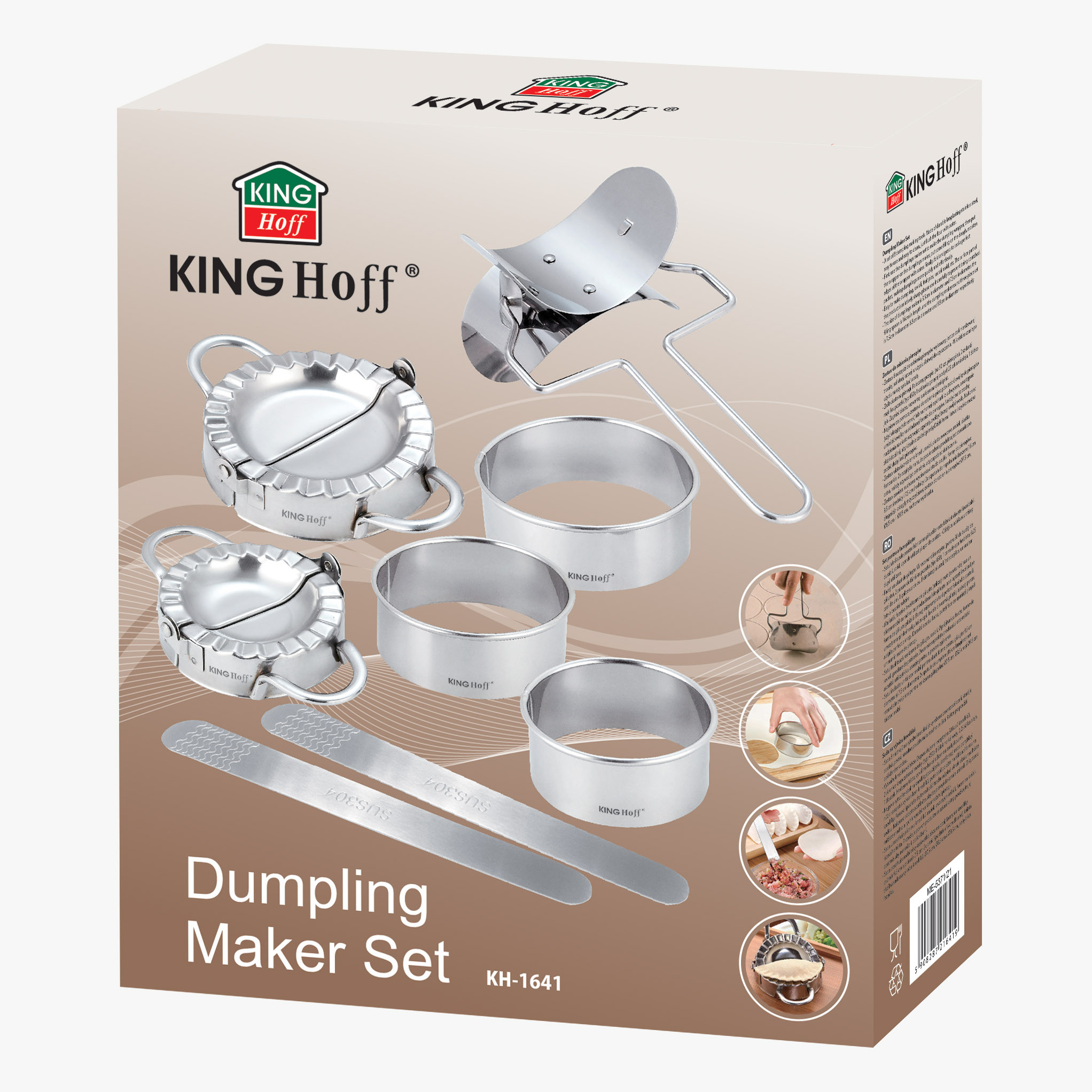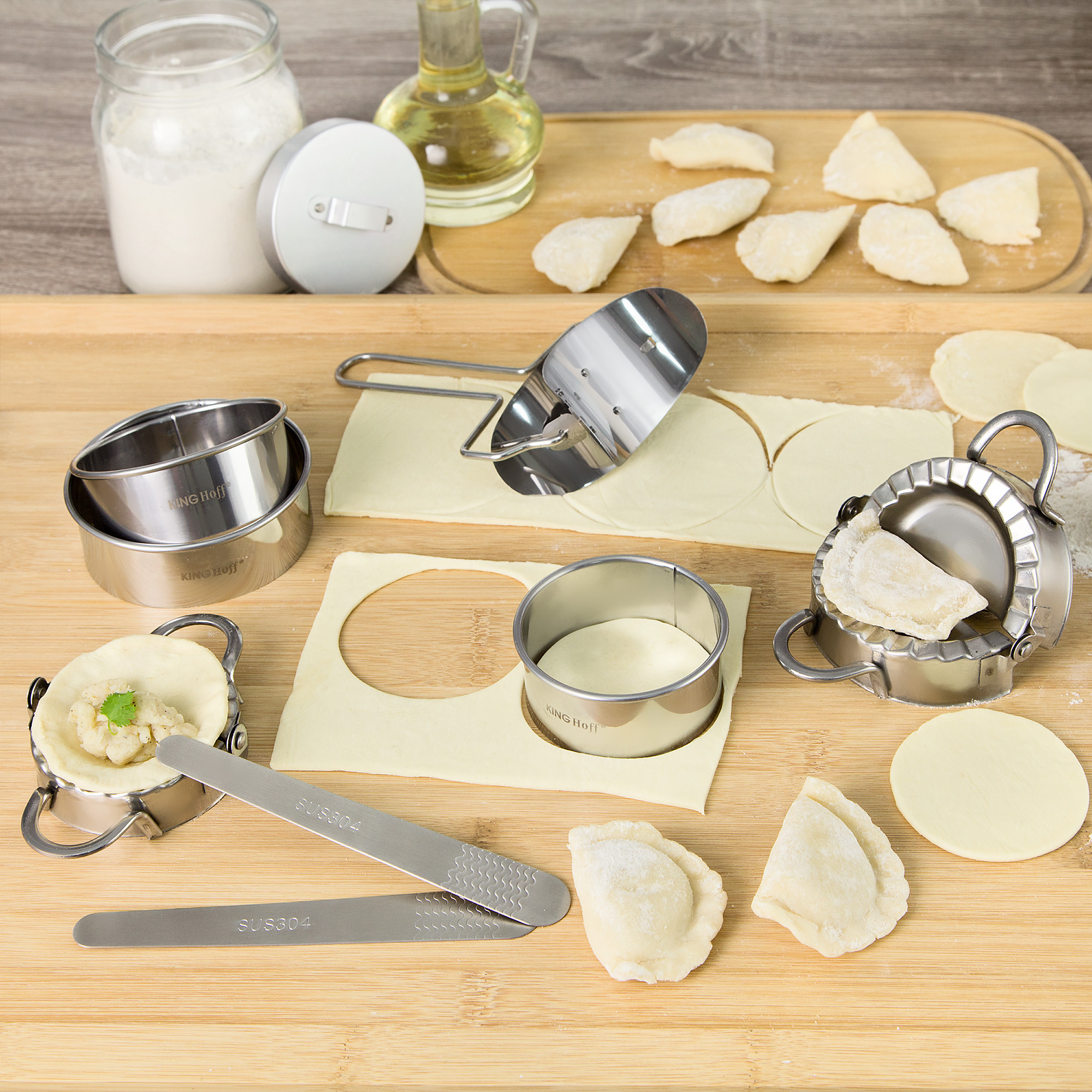 Zestaw 8 narzędzi do robienia pierogów wykonany jest ze stali nierdzewnej trwałej, solidnej, łatwej w użyciu i łatwej do czyszczenia. -W krótkim czasie po użyciu należy spłukać wodą.