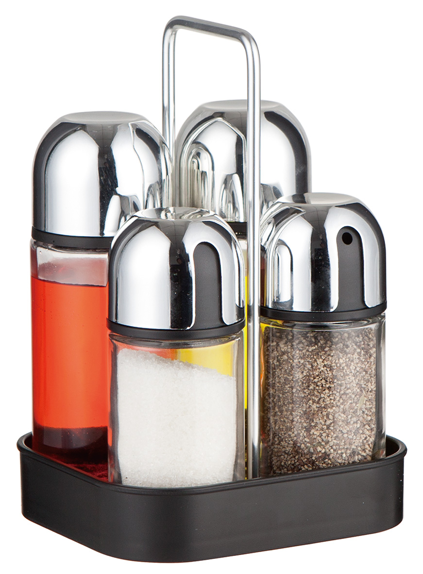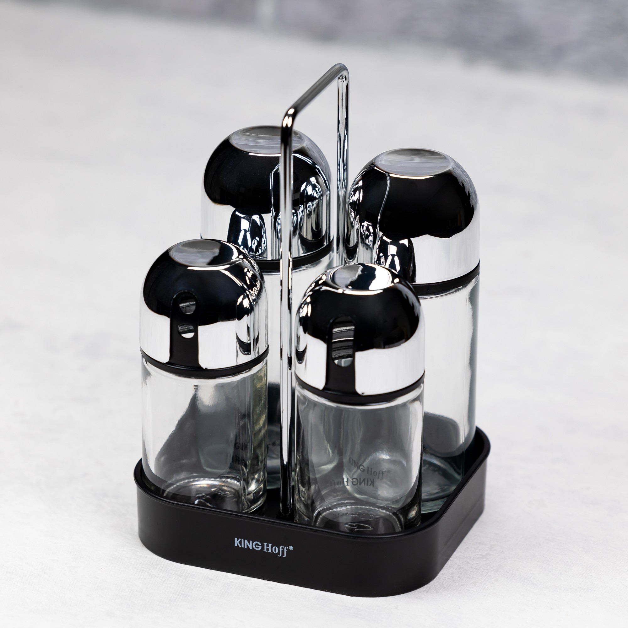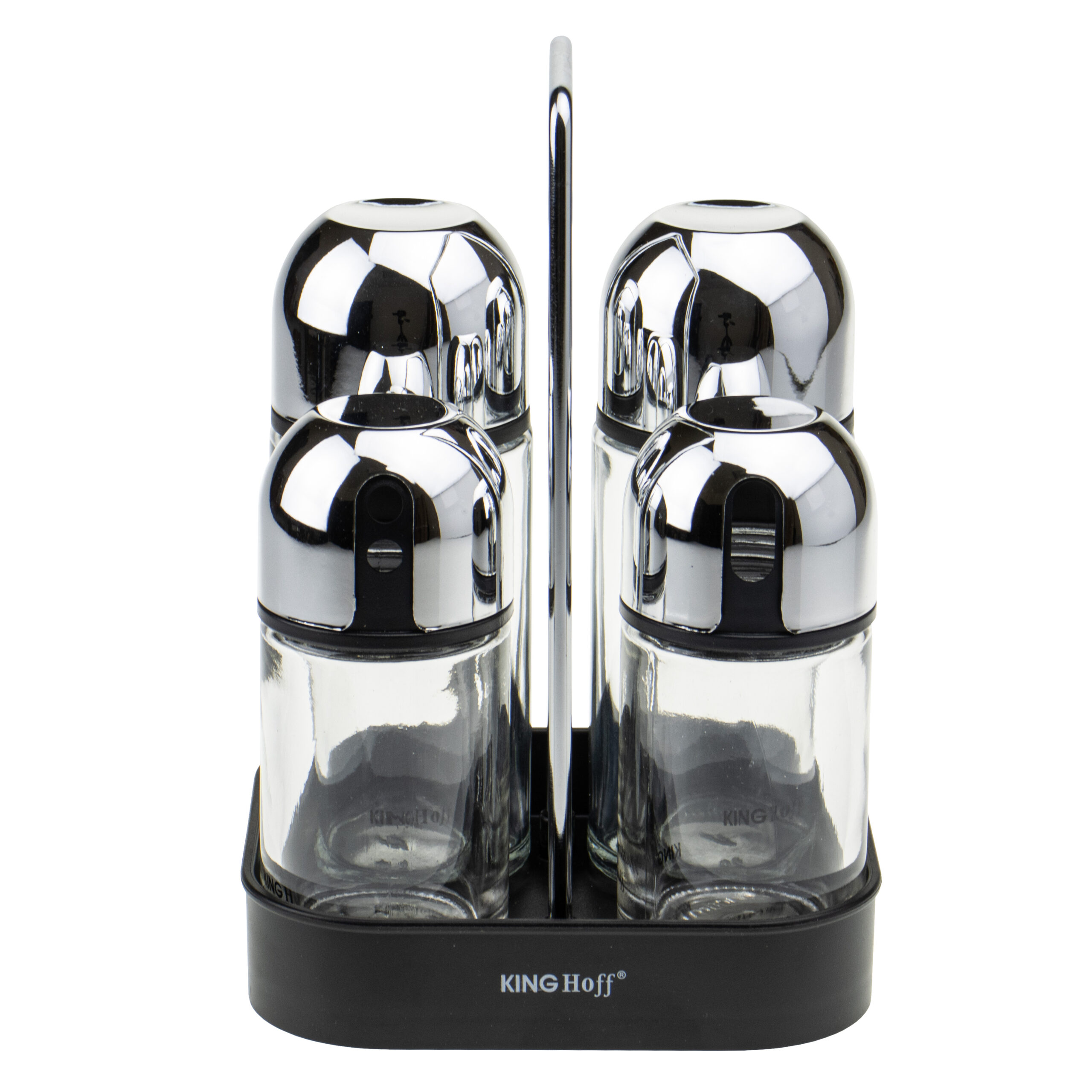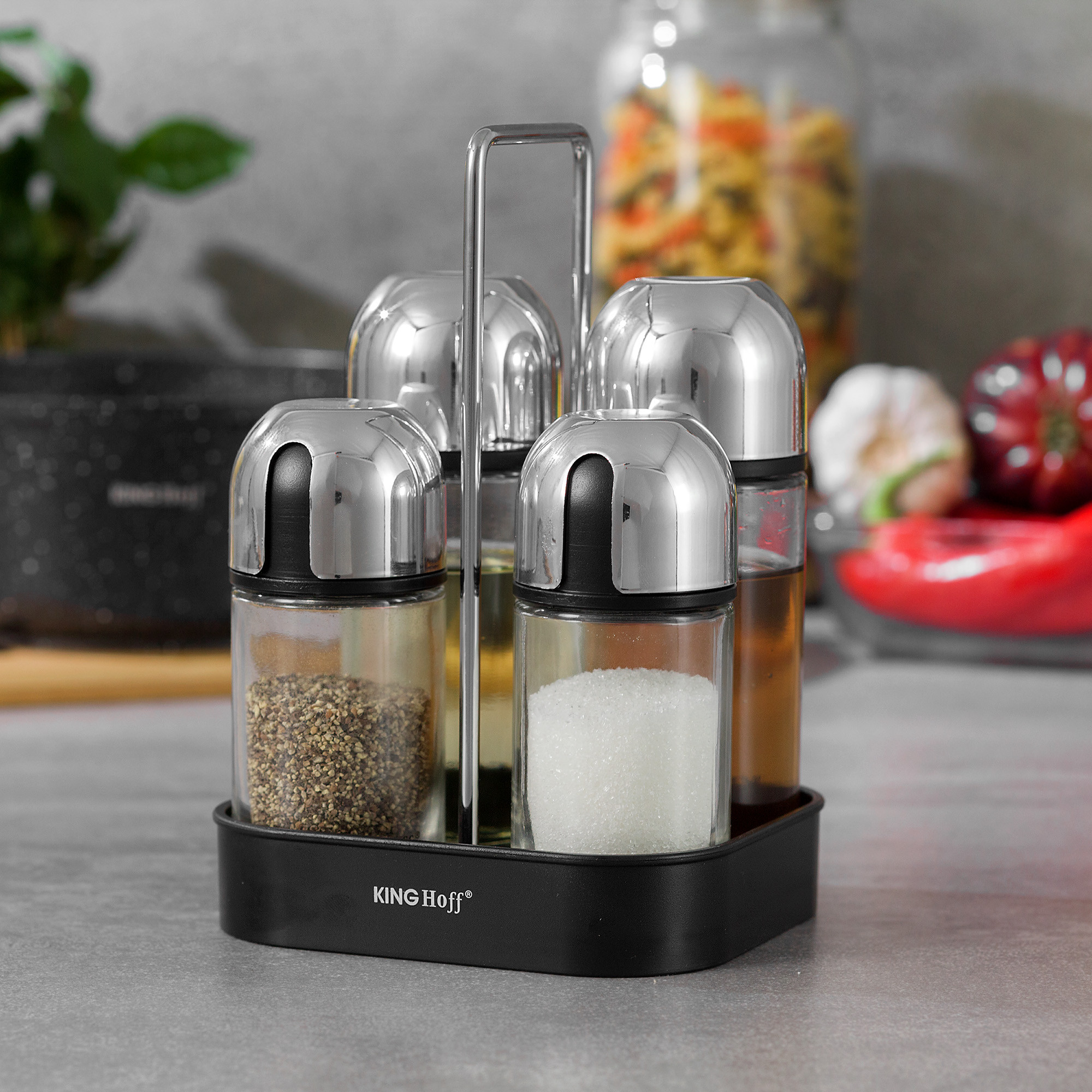 Komplet przyprawników składający się z solniczki pieprzniczki pojemnika do oliwy i octu, wykonany jest ze szkła, które charakteryzuje się eleganckim, ponadczasowym wyglądem i prostym designem. Szklane naczynia świetnie pasują do każdej zastawy stołowej oraz wystroju kuchni. Ponadto są łatwe w utrzymaniu czystości i higieniczne.