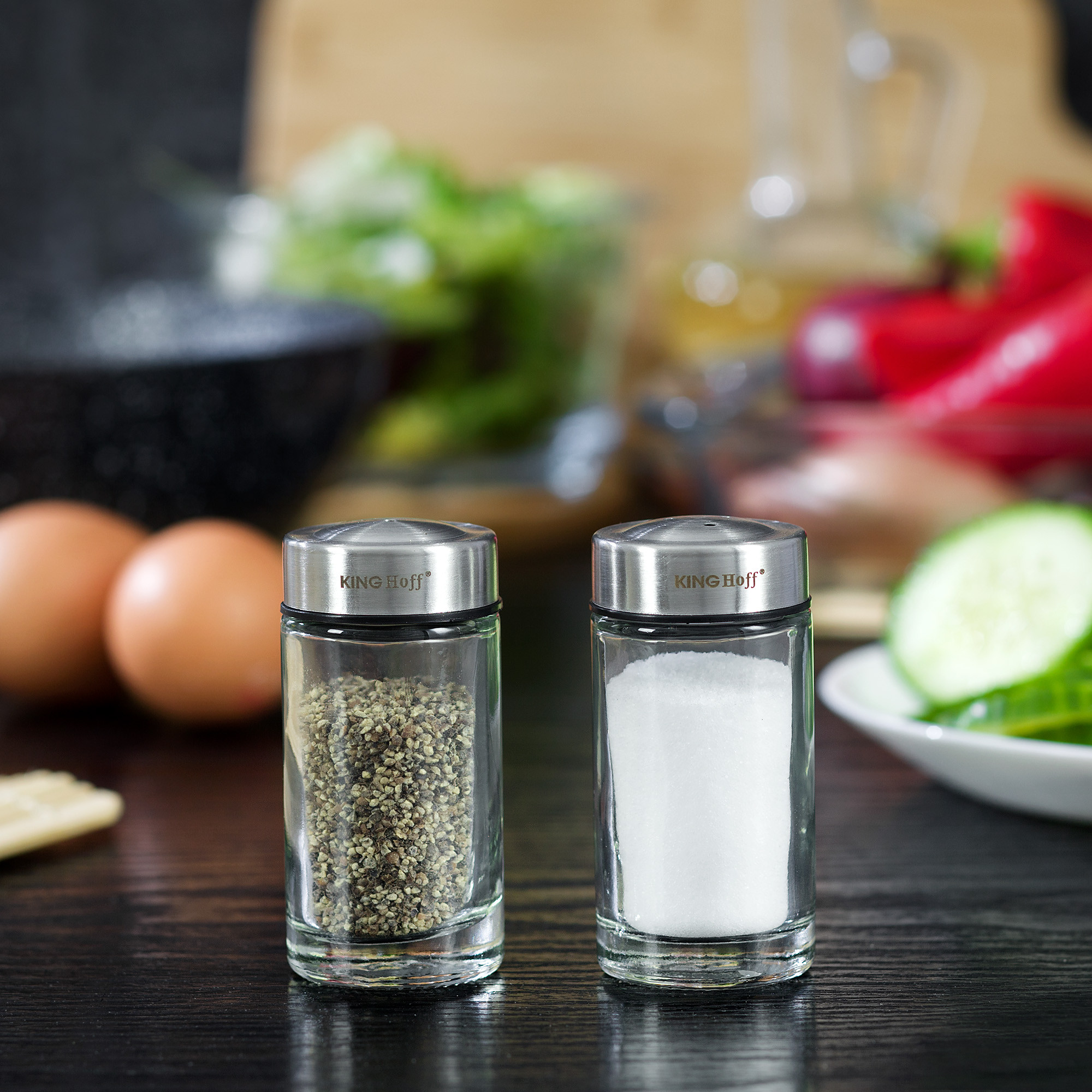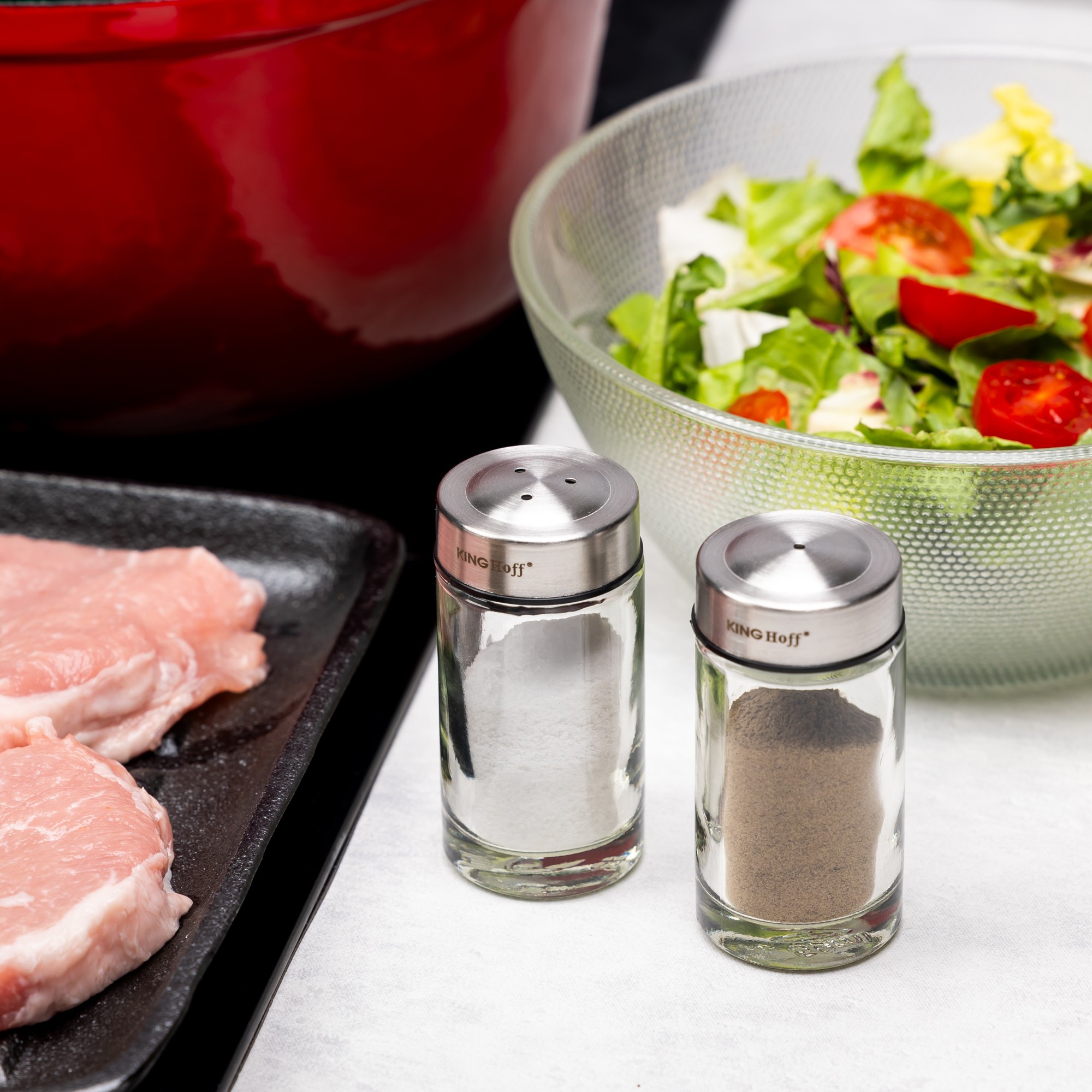 Zestaw solniczka i pieprzniczka, szkło metal KingHoff