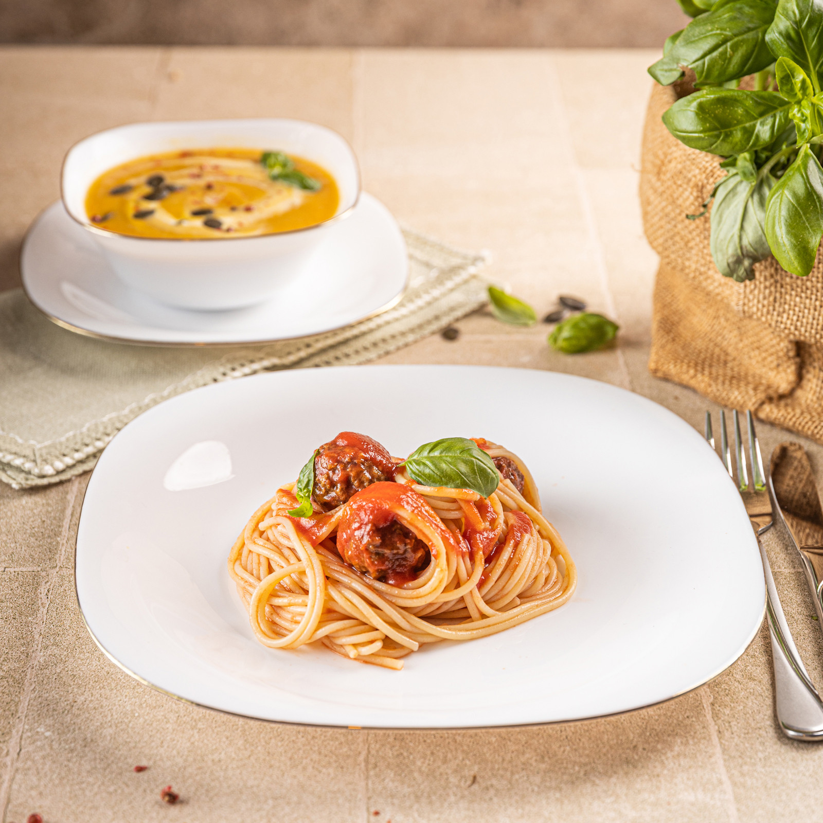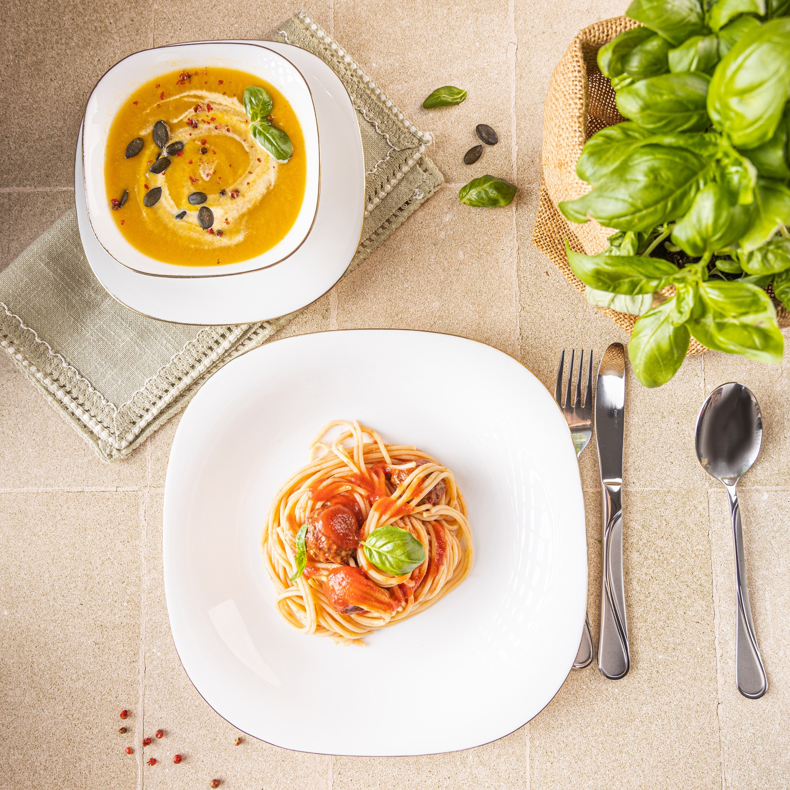Nowoczesna elegancja na stole – zestaw talerzy TOPAZ w kształcie kwadratu
