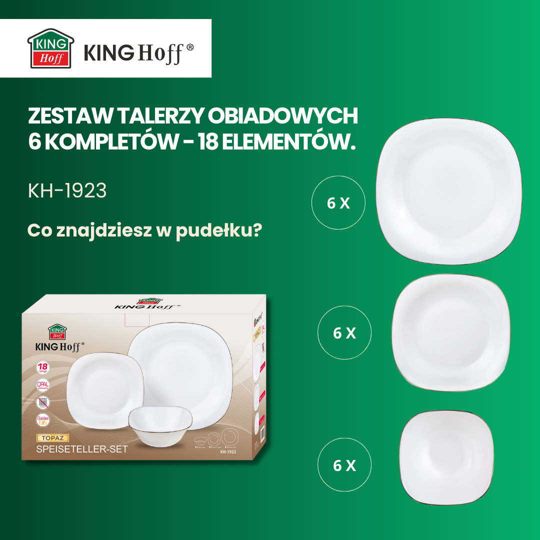 Produkty Kinghoff charakteryzują się trwałością, funkcjonalnymi detalami (miarki wewnątrz garnków, wielowarstwowe dna termiczne, wygodne uchwyty) oraz nowoczesnym wzornictwem, które pasuje do zarówno klasycznych, jak i nowoczesnych kuchni. W asortymencie marki znajdują się także żeliwne naczynia Kinghoff, zaparzacze i czajniki, idealne do parzenia herbaty i kawy oraz eleganckiego serwowania napojów.