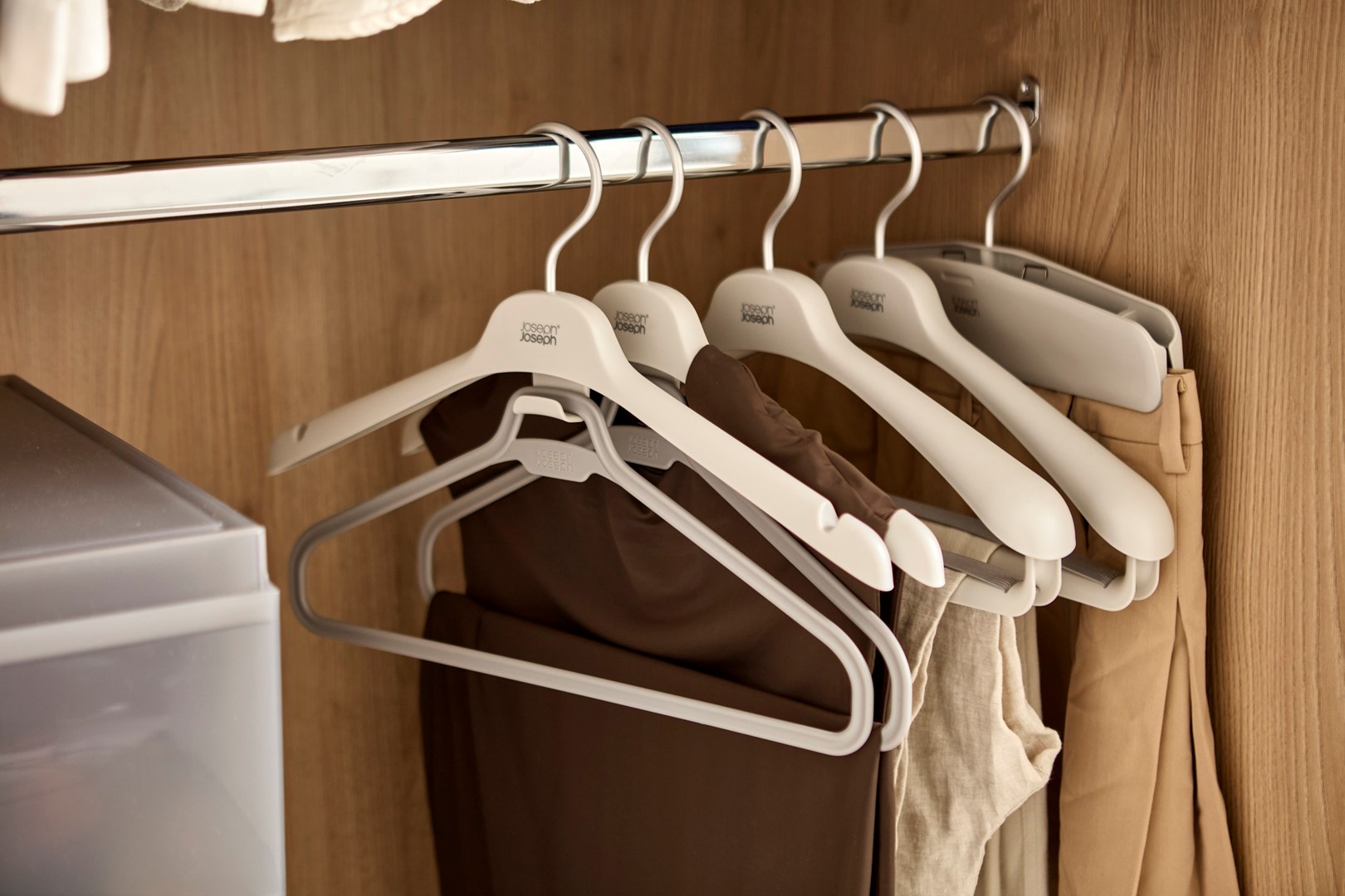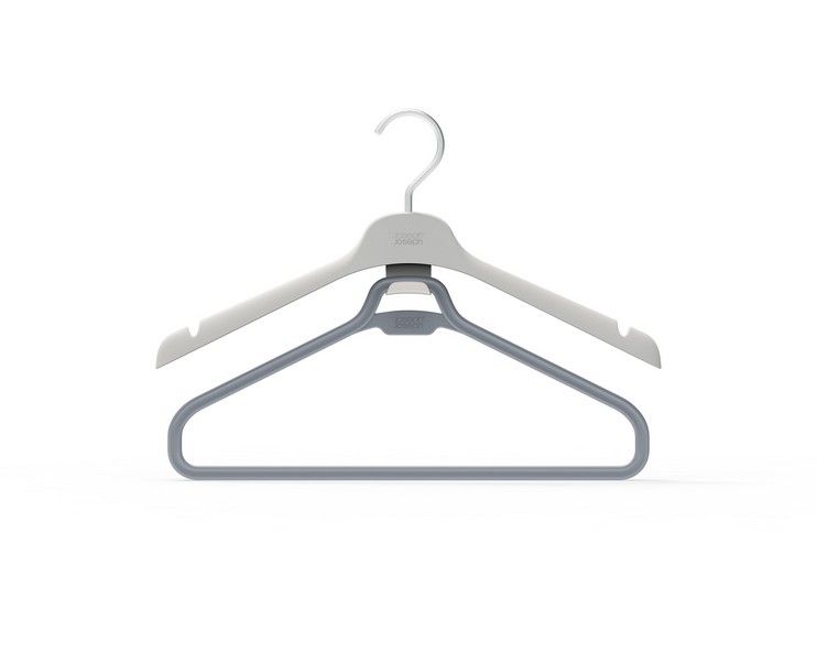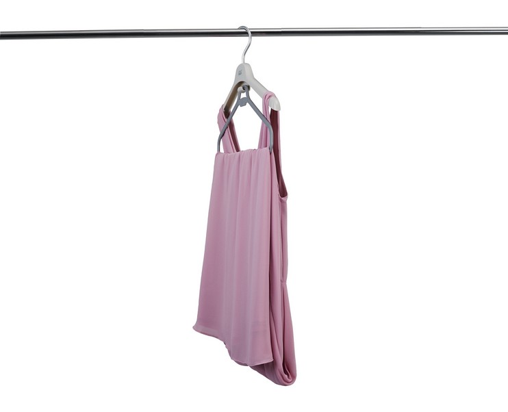 – każdy składa się z tradycyjnego wieszaka z nacięciami na ramiączka oraz dodatkowego elementu do zawieszenia dłuższej części garderoby,